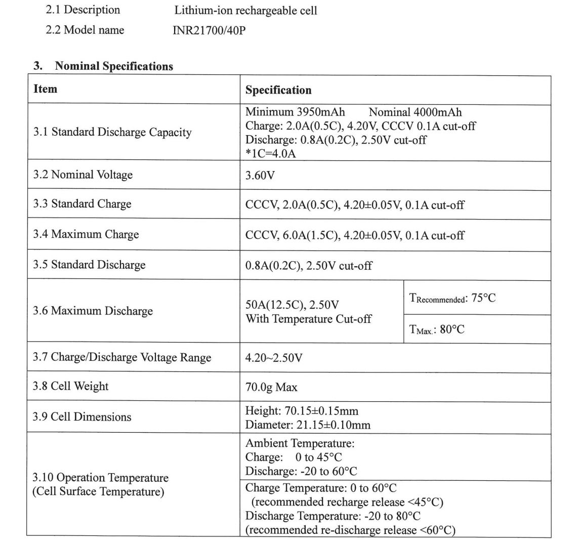 Иногда у меня складывается впечатление, что инженеры фирмы EVE пишут документацию от балды, а точнее, просто под копирку, иначе объяснить номинальный ток заряда в 0.2С и максимальный в 1С я не могу. Такая же картина была с 18650 3.5Ач.