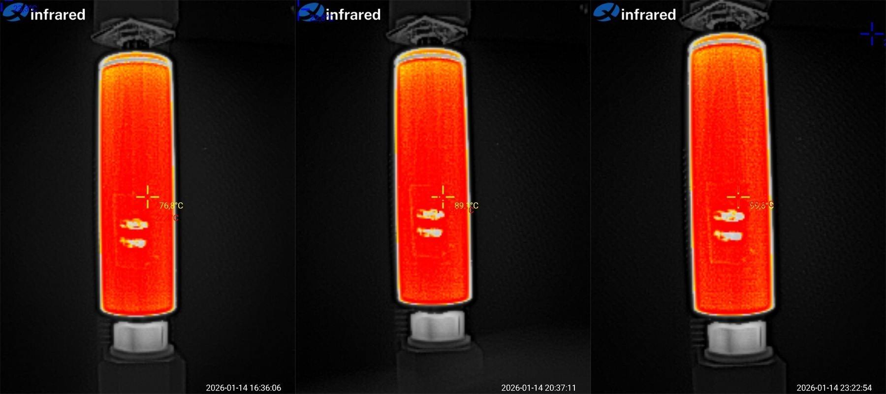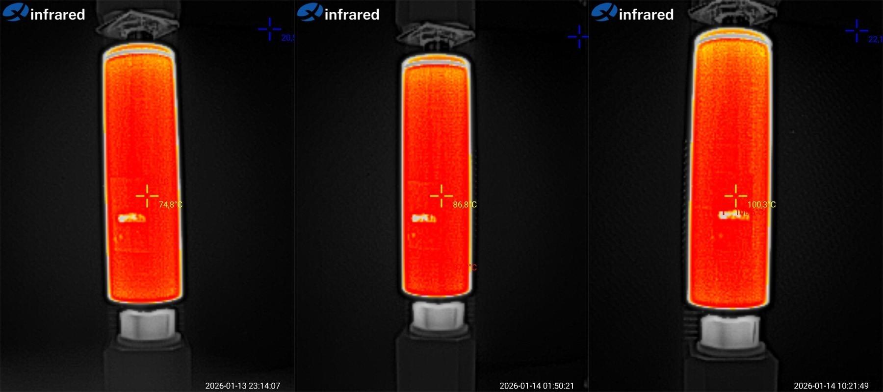 Температура корпуса при токах разряда 2 и 3С. Температура корпуса при токе 3С составила около 70 градусов, что вполне нормально, но напомню, высокоемкие аккумуляторы более критичны к перегреву чем высокотоковые, потому я рекомендую все таки максимально 2С.