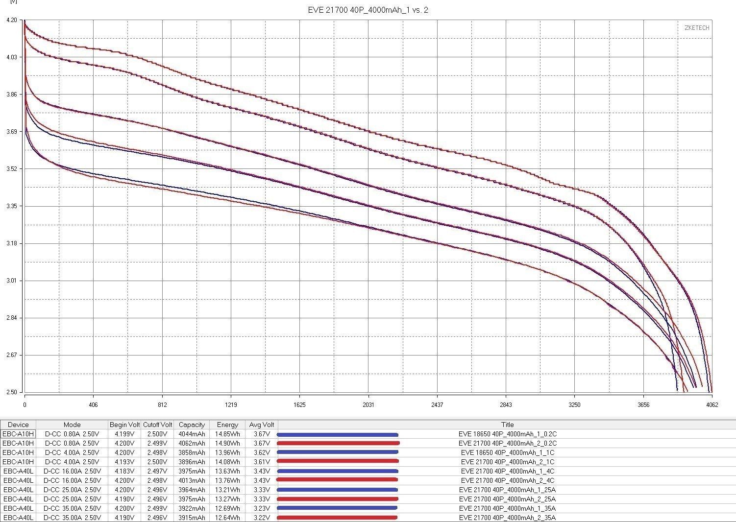 EVE 21700 40P_4000mAh - С одной стороны вроде и неплохие аккумуляторы, но как-то я ожидал меньшей температуры, впрочем в даташите пишут, что ток разряда до 50А, но при условии что температура корпуса не более 80 градусов, потому как бы нареканий нет. На мой взгляд неплохие ячейки за свои деньги.