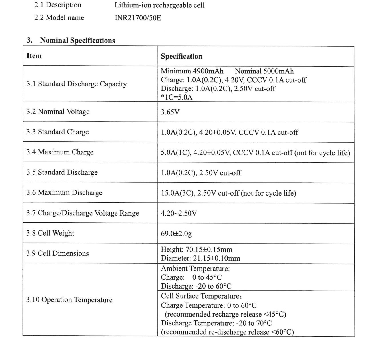 Ячейки позиционируются как высокотоковые, потому также как и 25P могут быть полезны для установки в батареи электроинструмента.