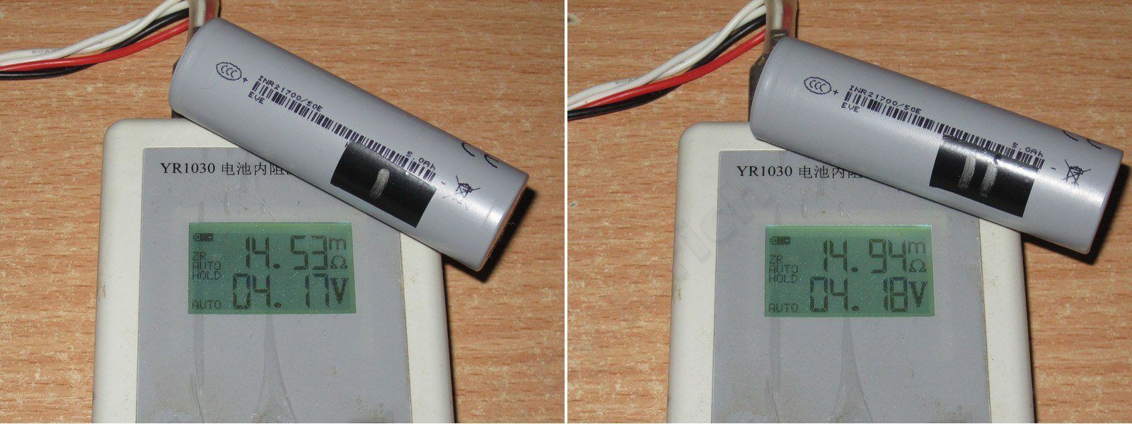 Как и в прошлый раз диаметр аккумулятора измерялся по большему значению, ну а так в общем-то внешне самые обычные ячейки размера 21700.