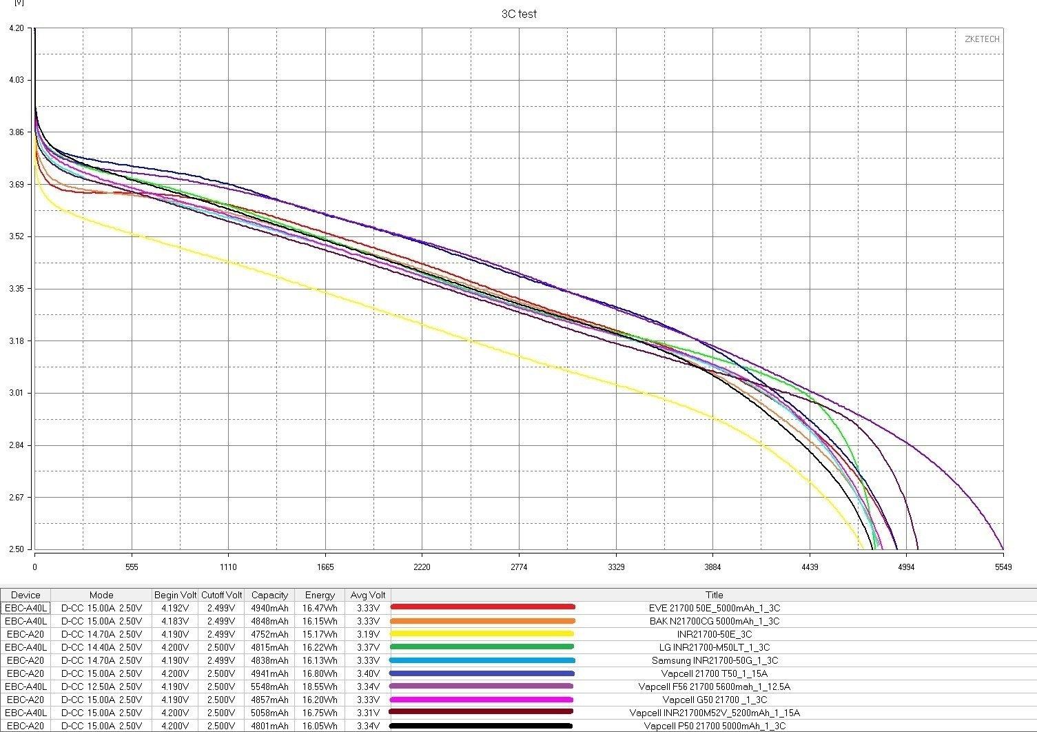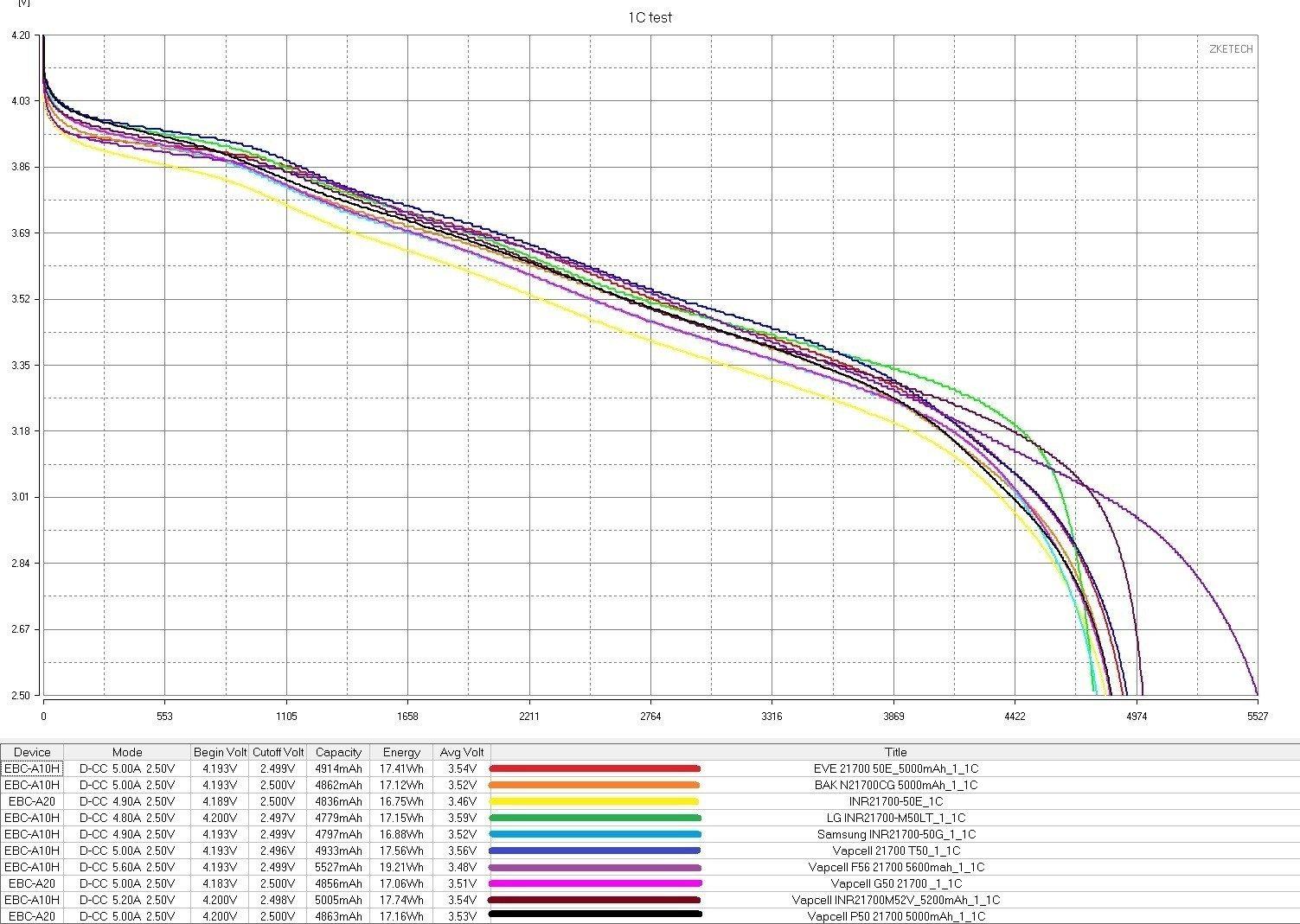 При токе 1С расклад практически не изменился, 5600 понятно что впереди, за ним модель на 5200, потом Vapcell T50 и EVE, неплохо.