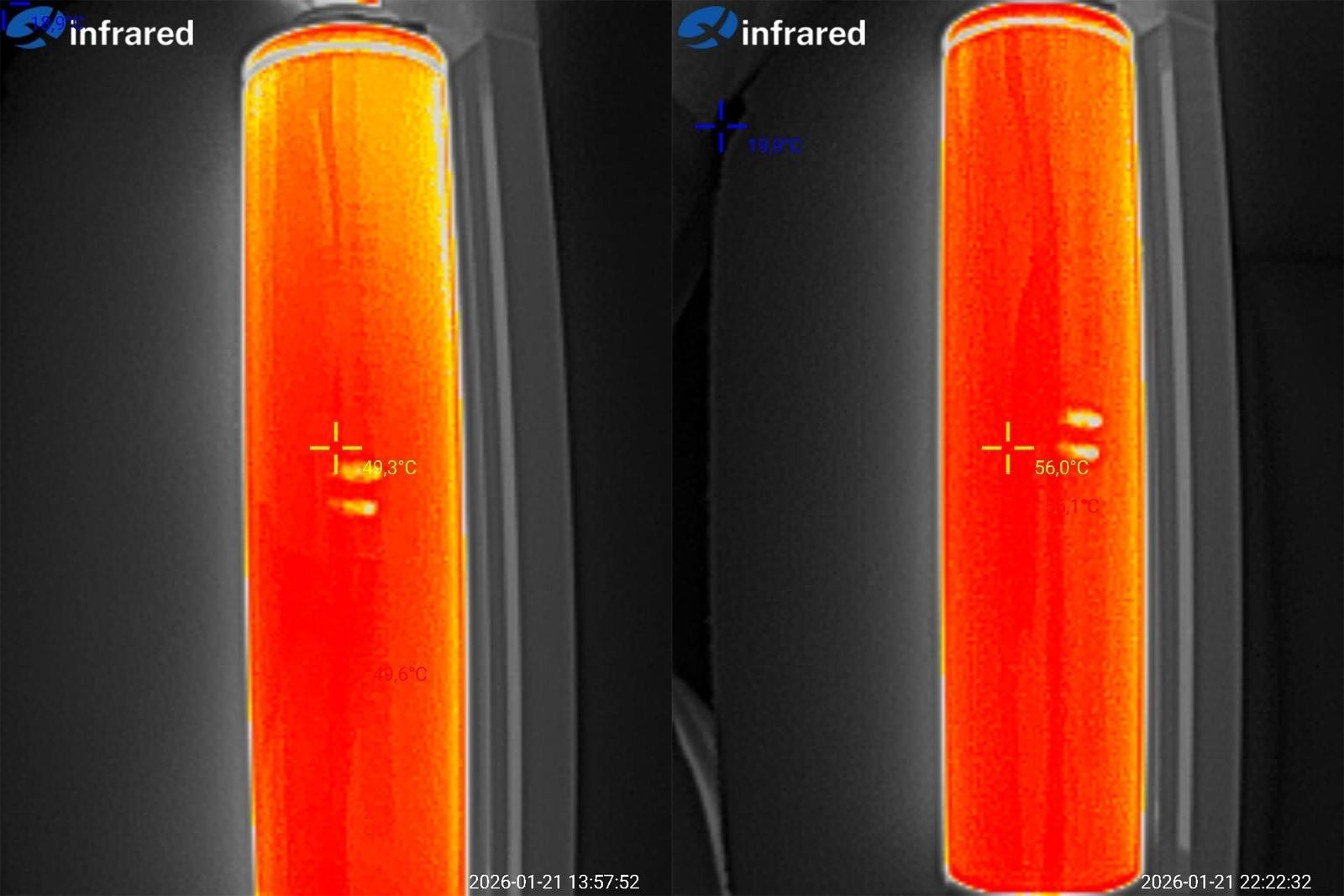 Температура при токах 2С и 40А, фактически то же самое что у предыдущих, без нареканий.