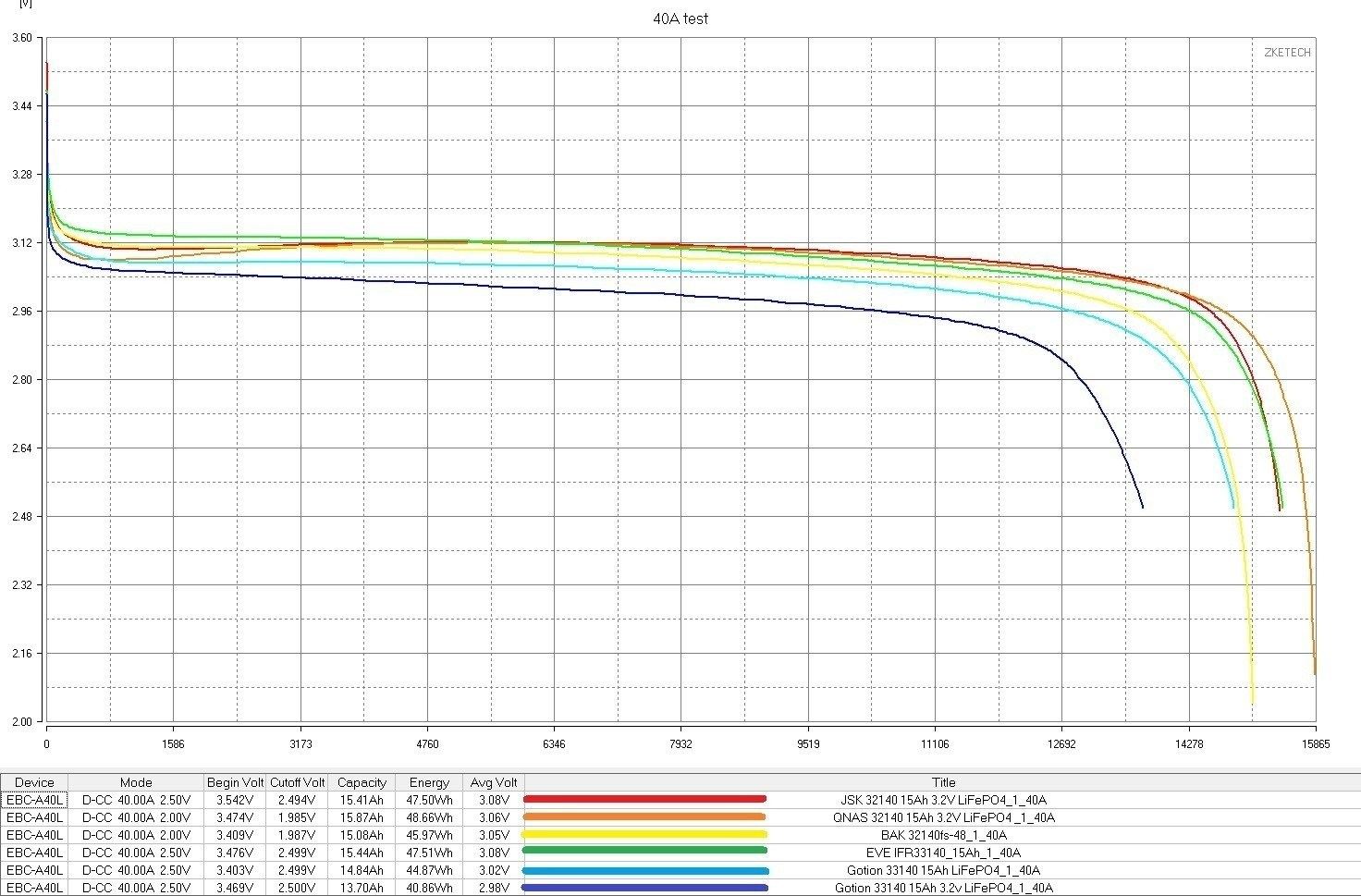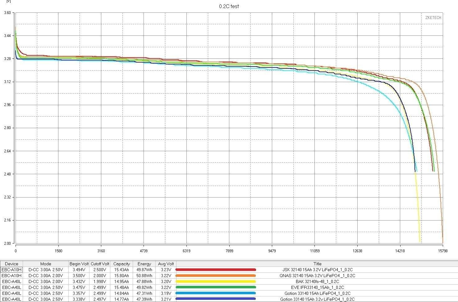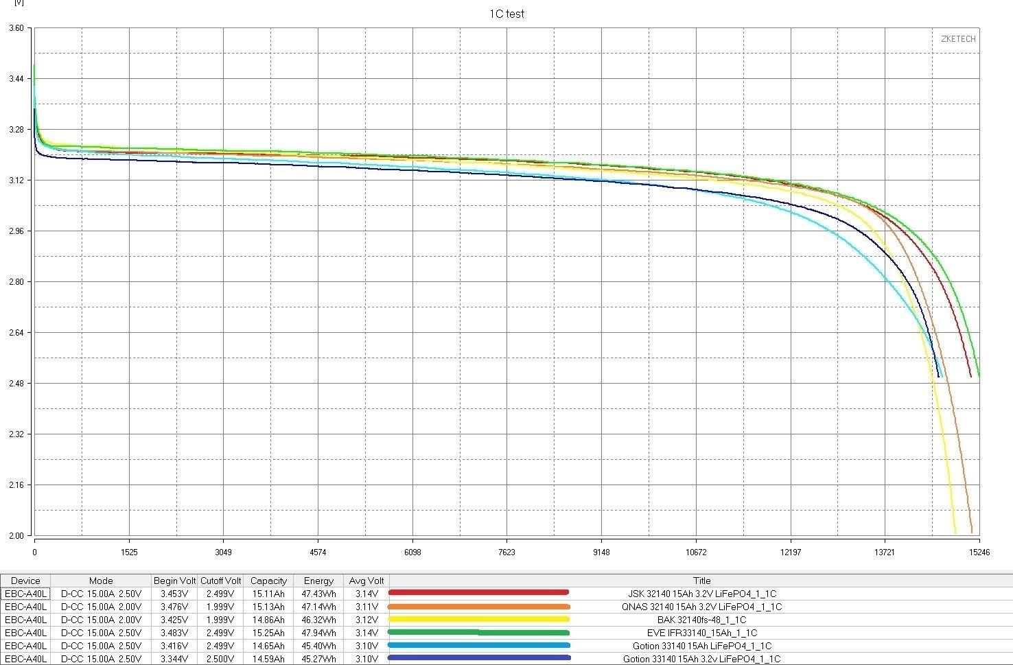 JSK 32140 15Ah - неплохие ячейки, по сравнительному графику очень похожи на популярные EVE IFR33140, буквально нос к носу, понравились.