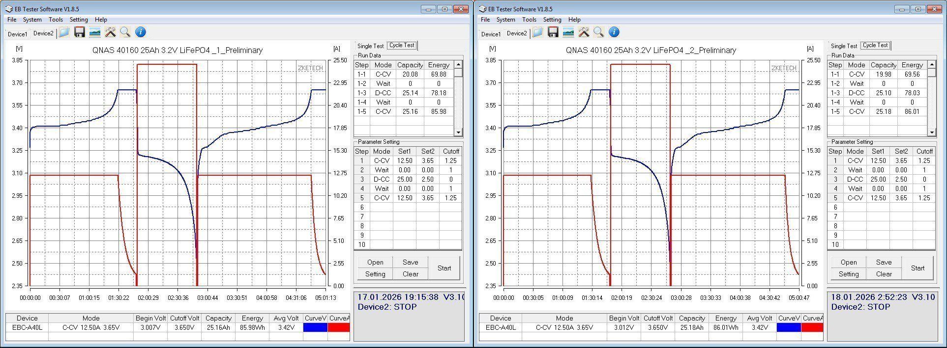 Аккумуляторам был проведен цикл Нормализации", к сожалению я допустил ошибку когда делал скриншот первого экземпляра. Но уже на этом этапе и так видно что результаты весьма сходны, просто по времени этого теста.