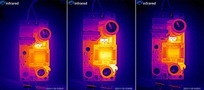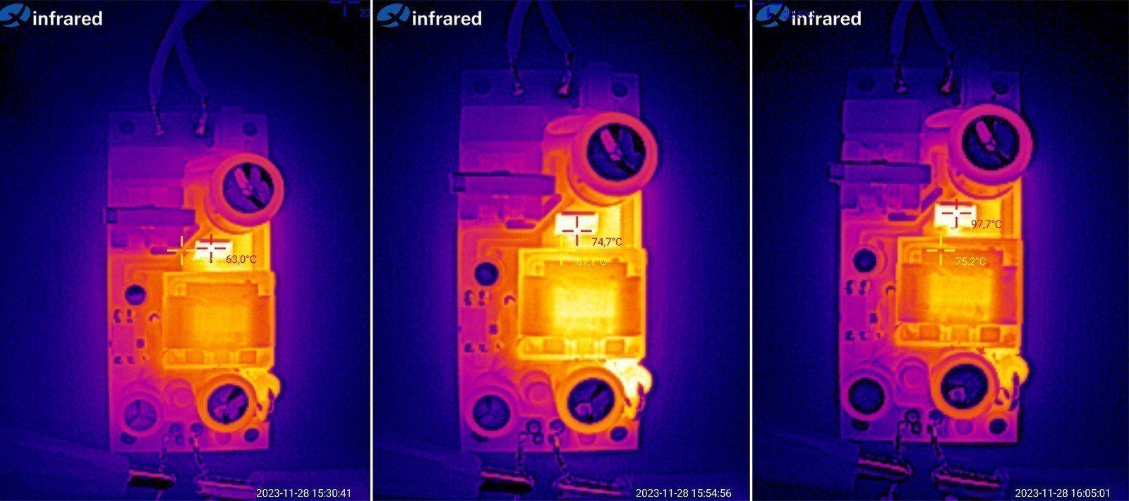 Термофото после теста при 50, 100 и 125% нагрузки.