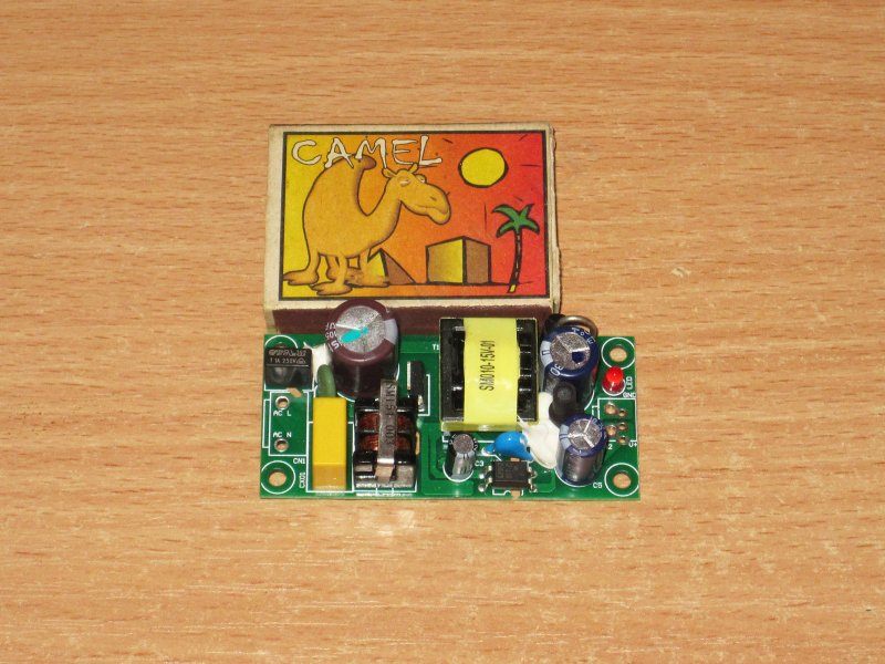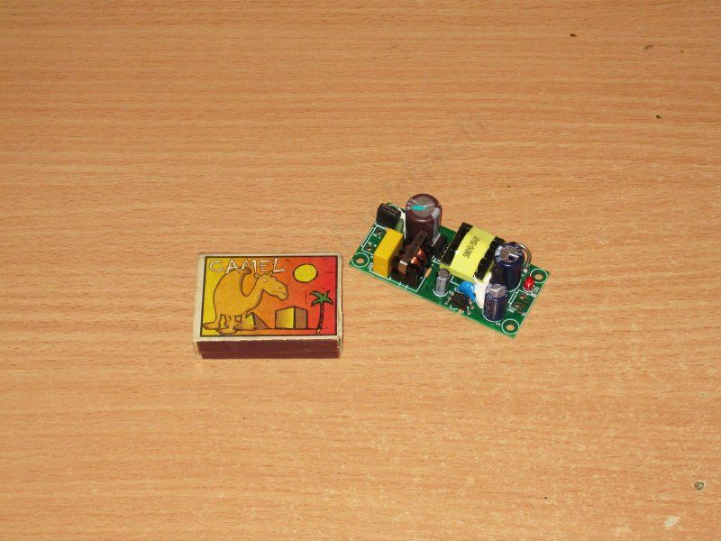 Размеры платы чуть больше размеров спичечного коробка, собственно это меня и привлекло, хотелось компактный блок питания примерно такой мощности.