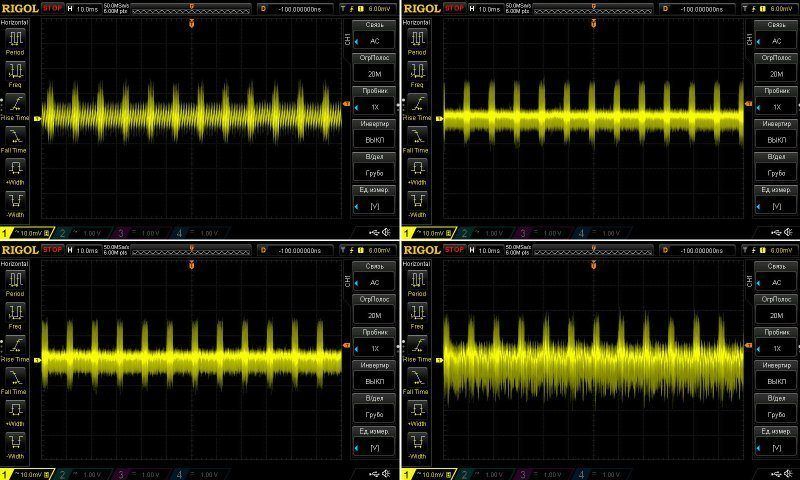 И даже в таком режиме получилось порядка 30мВ при 150% выходной мощности, при 100% было чуть меньше.
