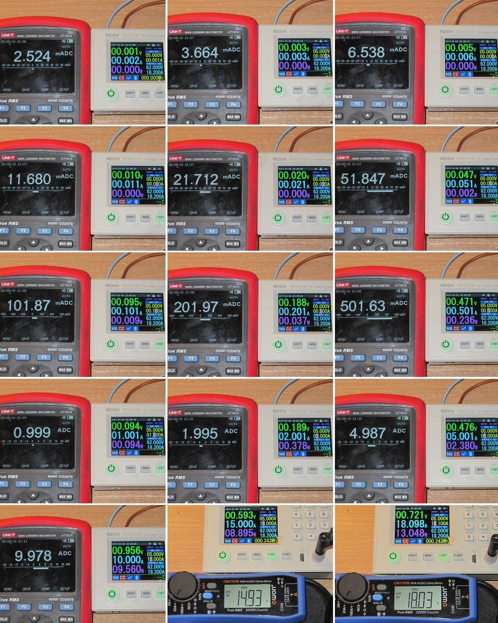 Тест третий, теперь то же самое с током, от 1мА до 18А.