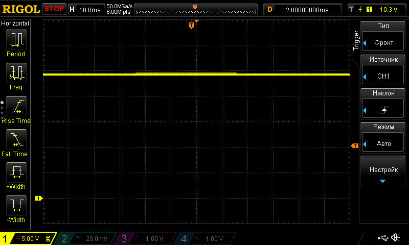 Для начала подача и снятие 5 вольт на выходе без нагрузки. Пришлось немного изменить методику: