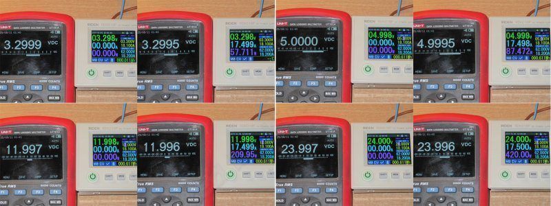 Где-то буквально идеально, где-то завышает на 0.01 вольта, но как по мне здесь вообще нет вопросов, точность отличная.