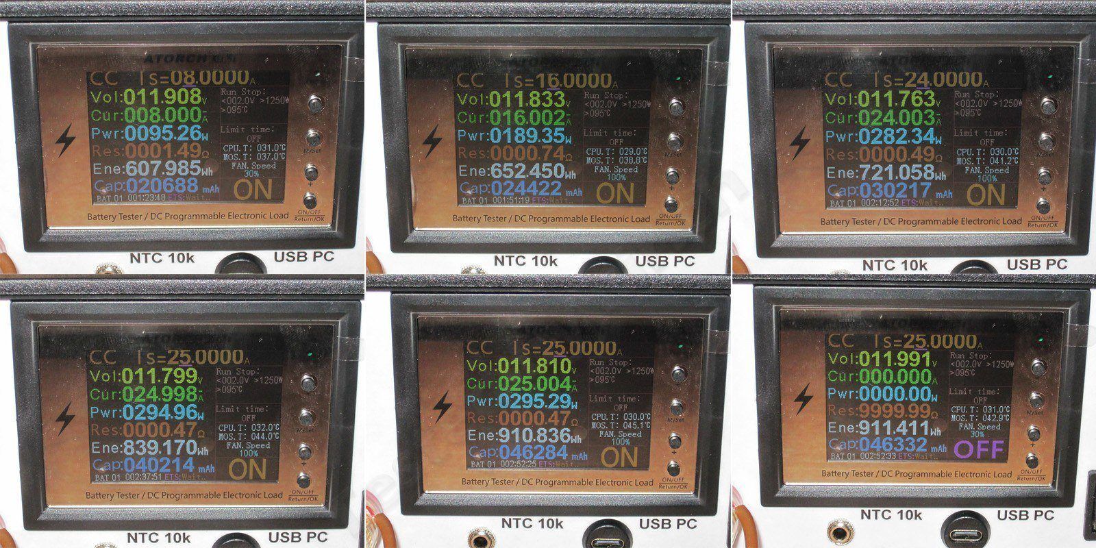 Тест проходил этапами примерно по 20 минут (чаще дольше), 8, 16, 24 и 25А, последний тест провел отдельно потому, что ток был впритирку к максимальному току защиты.