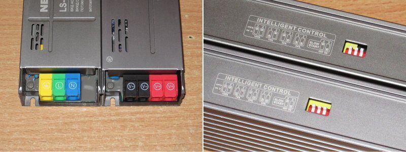 Переключая два первых переключателя мы выбираем напряжение, при котором светодиодные ленты будут отдавать около 25-50-75-100% мощности.