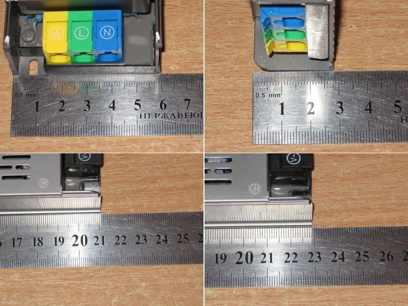 Ширина 60мм, высота около 28мм, оба параметра одинаковые для обоих блоков, а вот длина разная, 210 и 230мм.