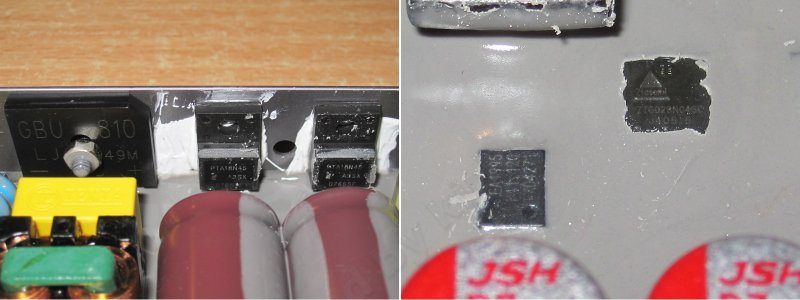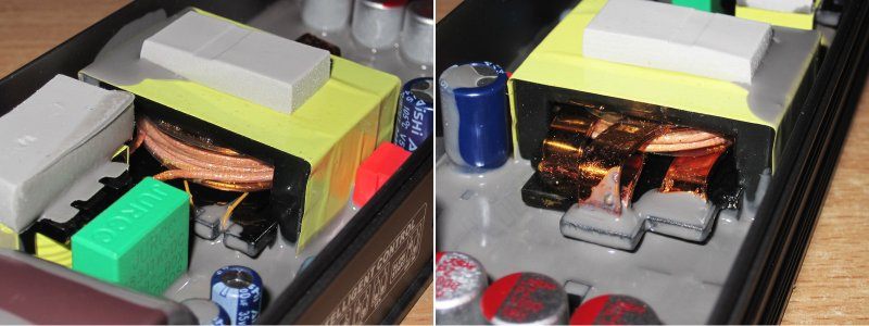 В общем производитель проинформирован, попутно спросил, почему у 300 ватт модели есть терморезинки между крышкой и трансформатором и дросселем, а у 400 ватт модели, которая греется сильнее, их нет.