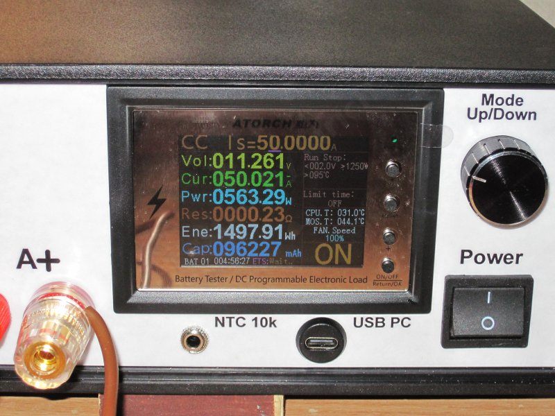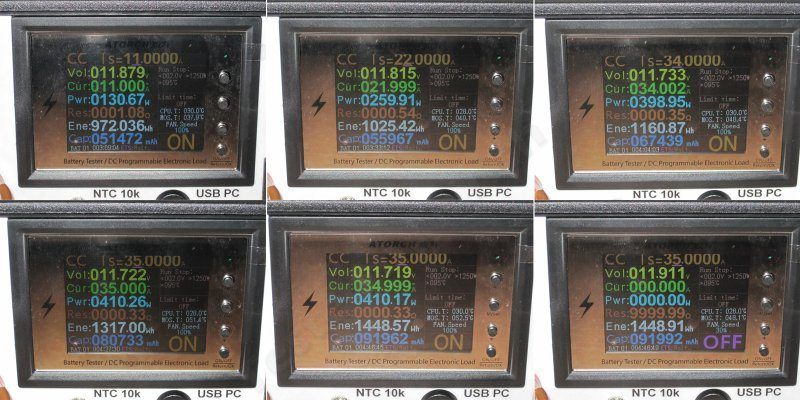 Для тестов использовалась та же нагрузка с максимальным током в 50А. и мощностью до 1200 ватт.
