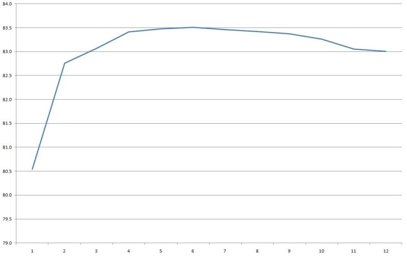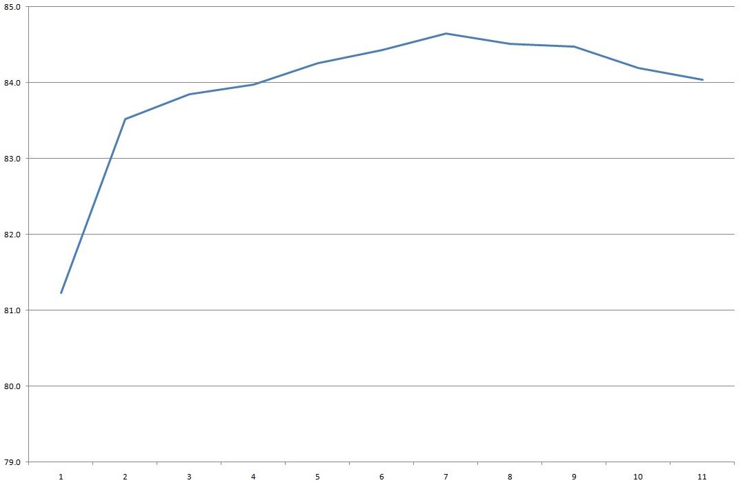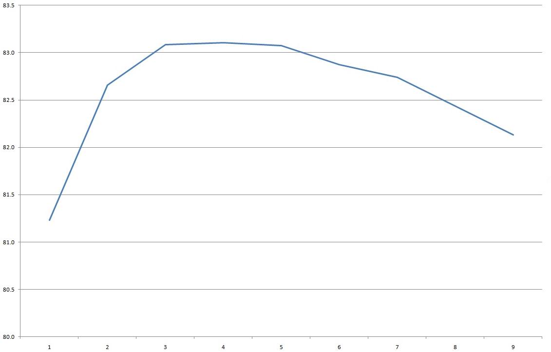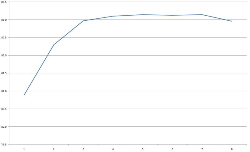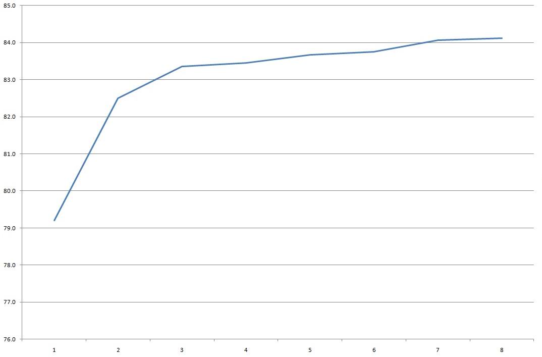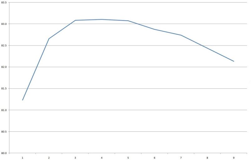 КПД чуть чуть пониже, ближе к 83%, шкала по горизонтали кратна 0.5А.