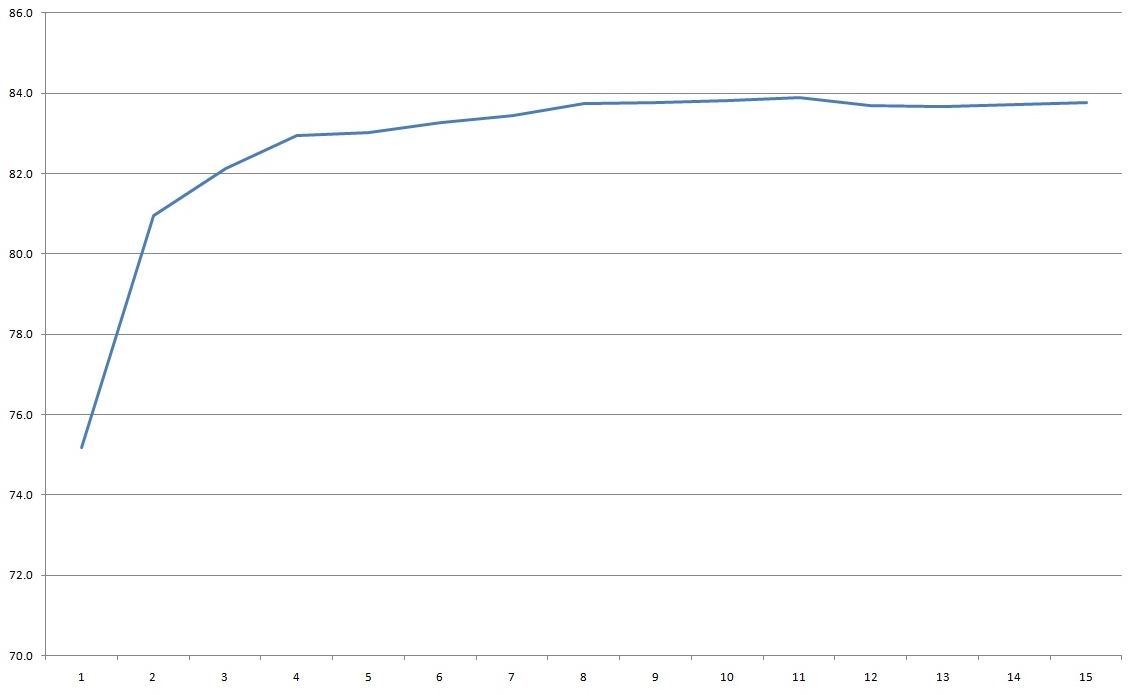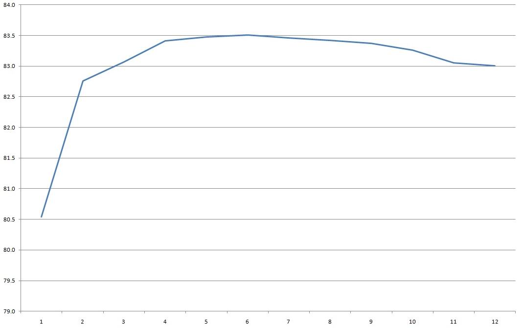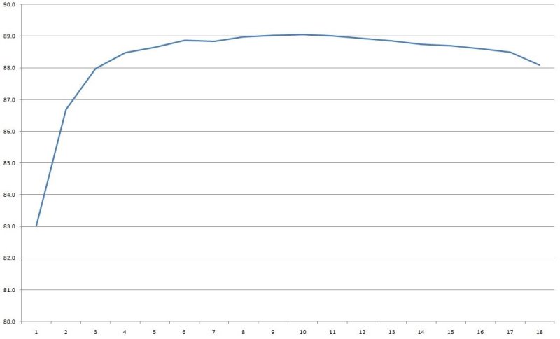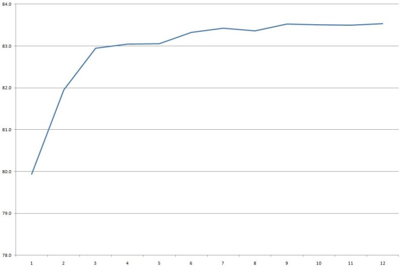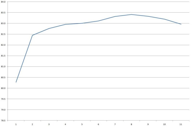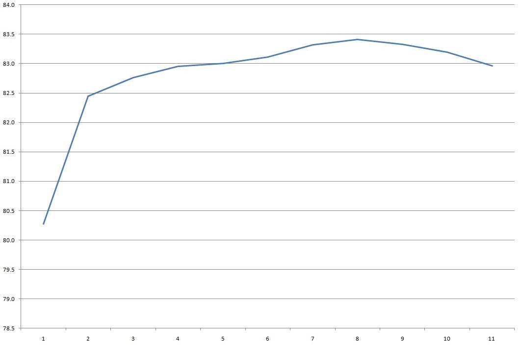 КПД чуть чуть пониже, ближе к 83%, шкала по горизонтали кратна 0.5А.