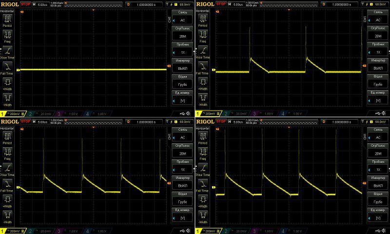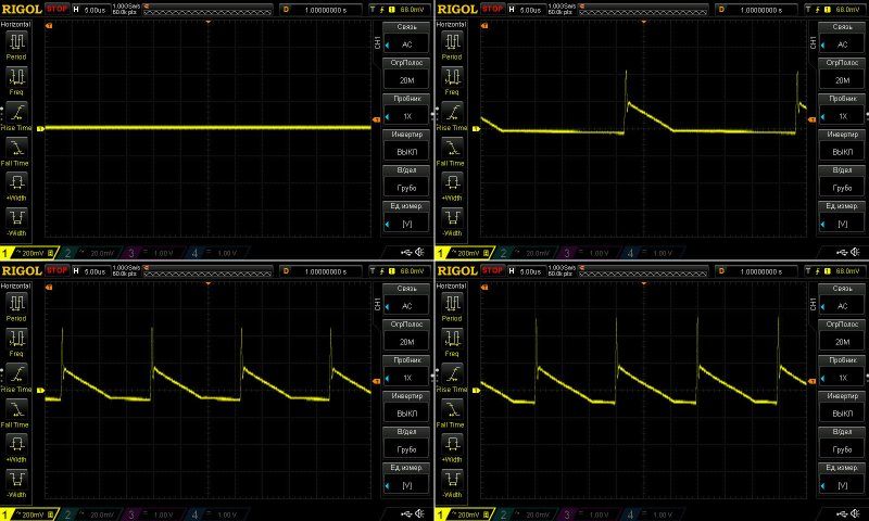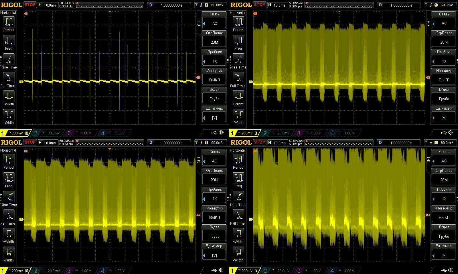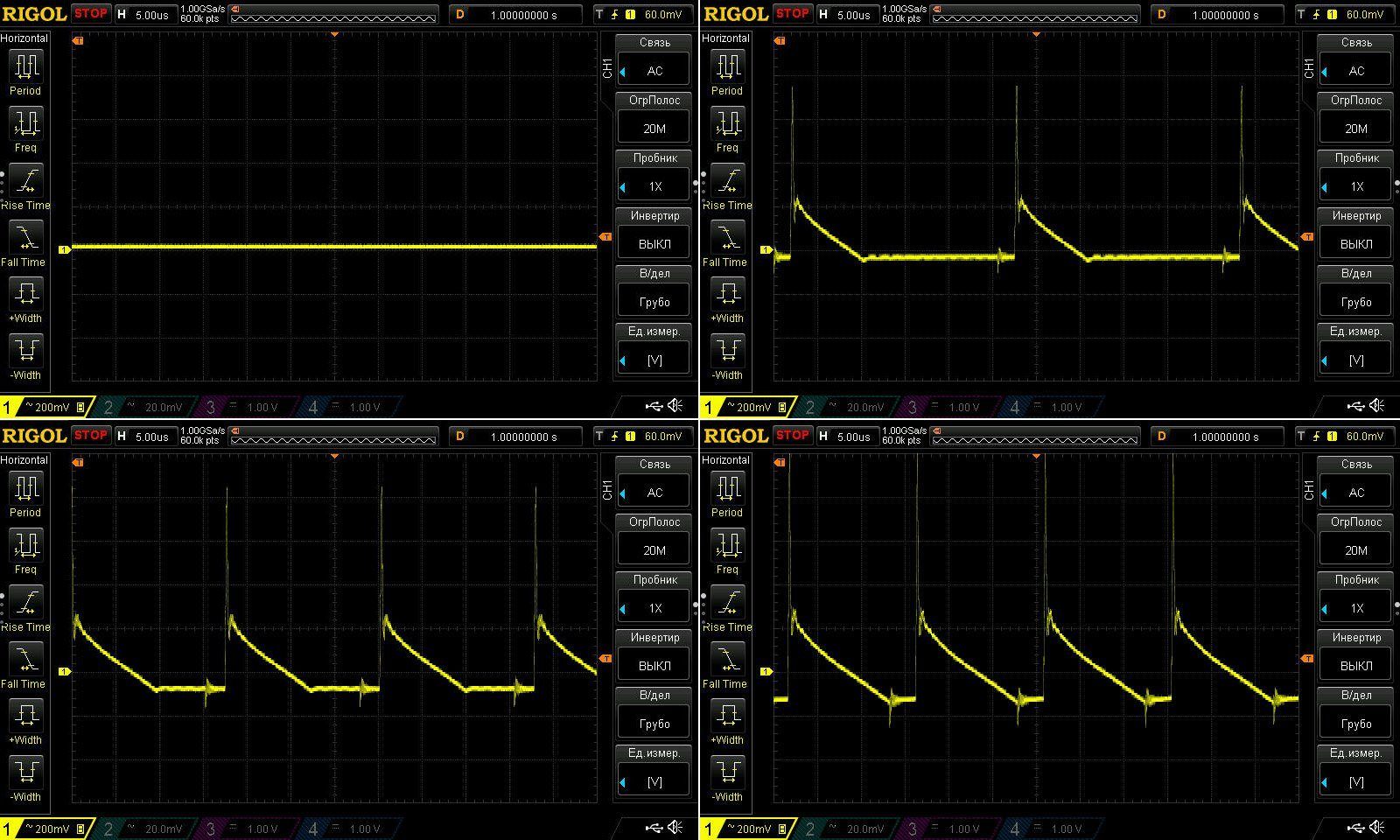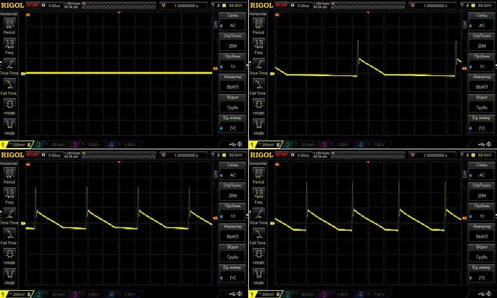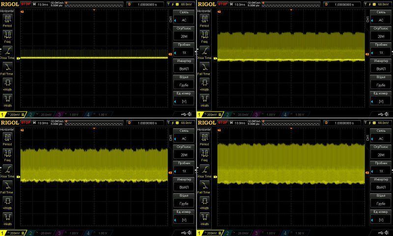 Пульсации без нагрузки и при токах 2, 4 и 6 ампер.