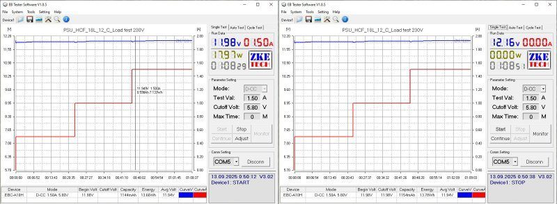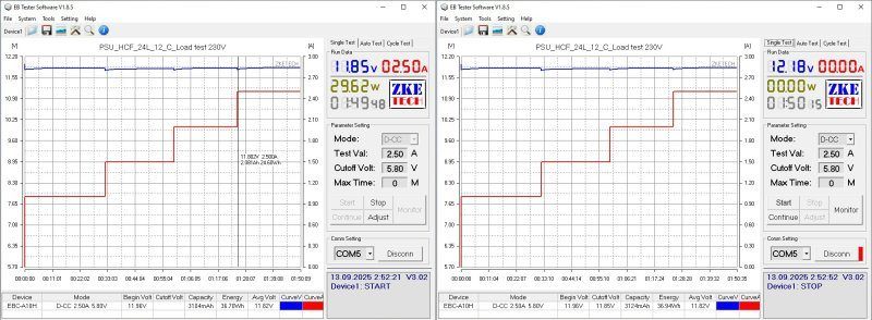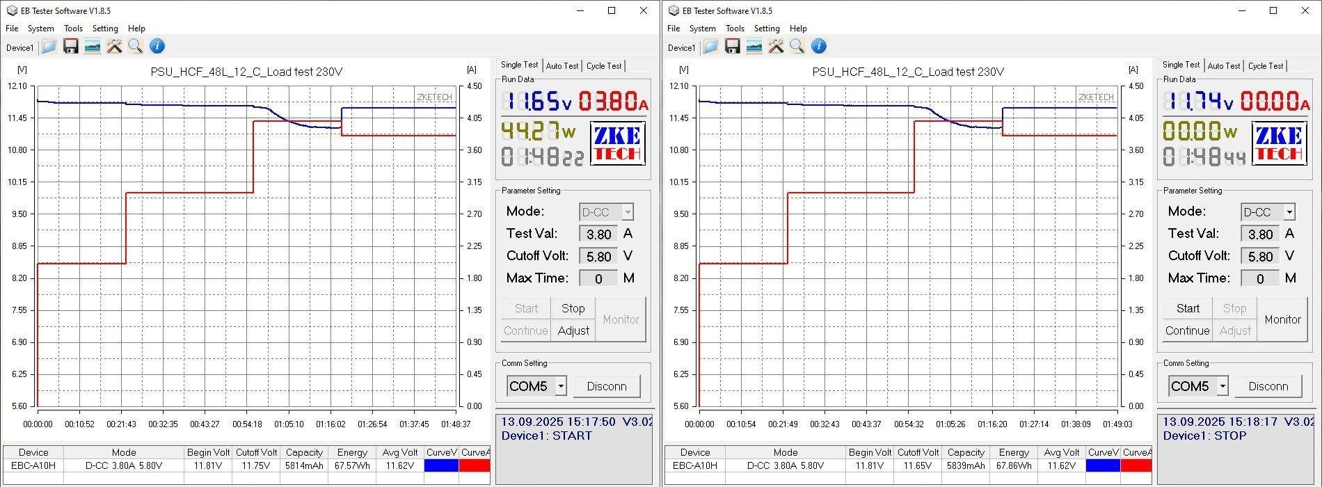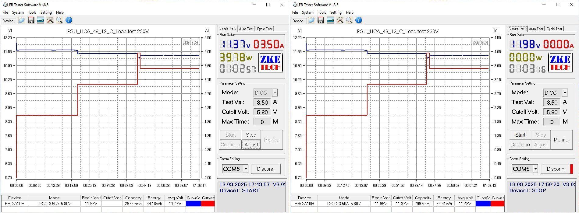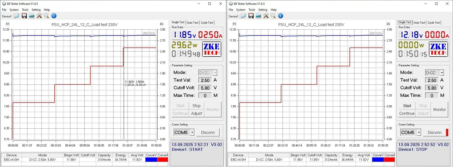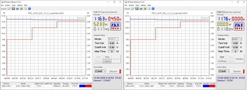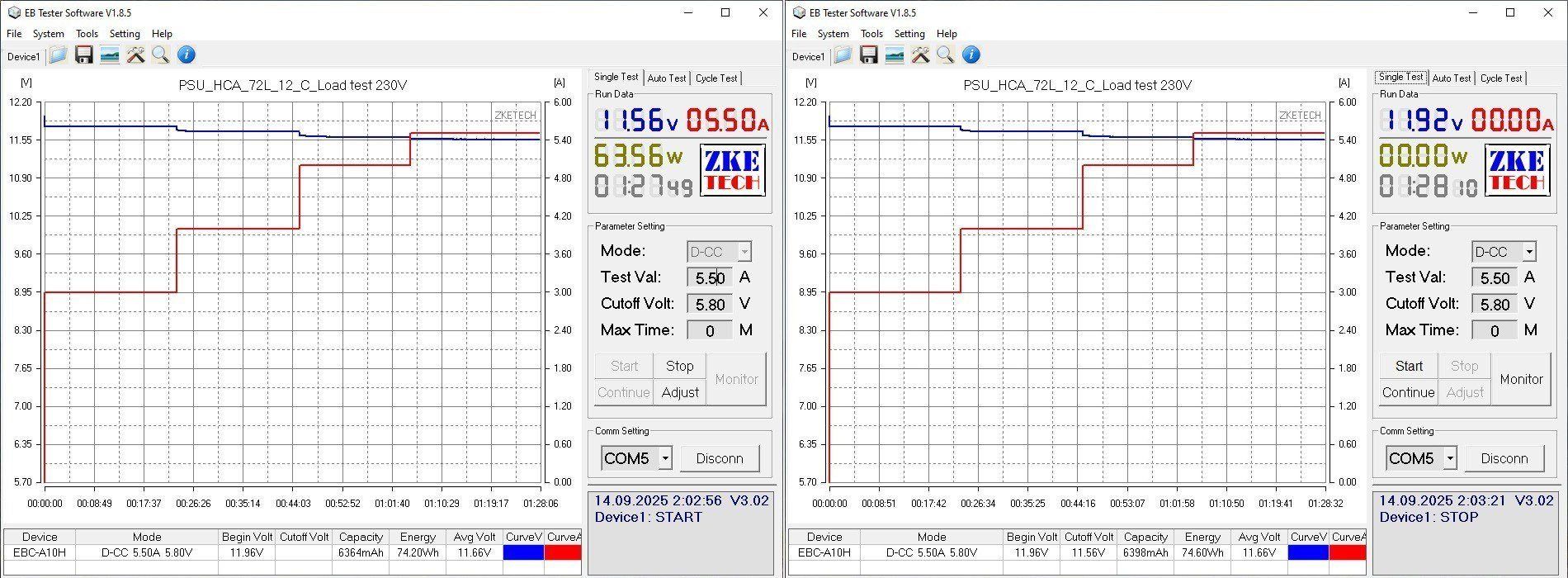Как обычно, для проверки маломощных блоков питания, я использую тестер батарей EBC-A10H, для теста КПД использовалась нагрузка на базе платы CL24.
