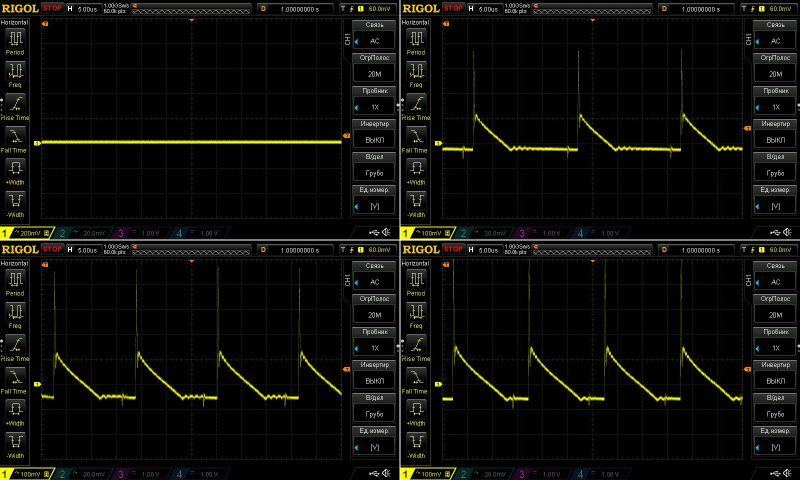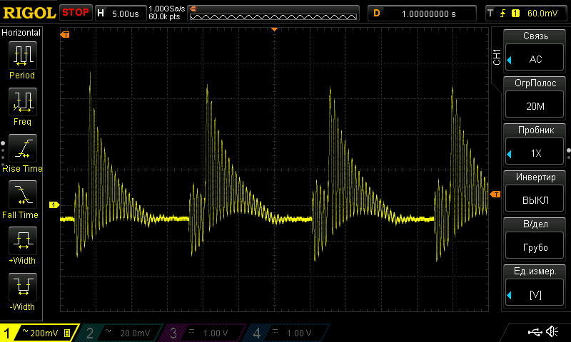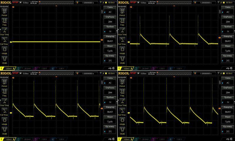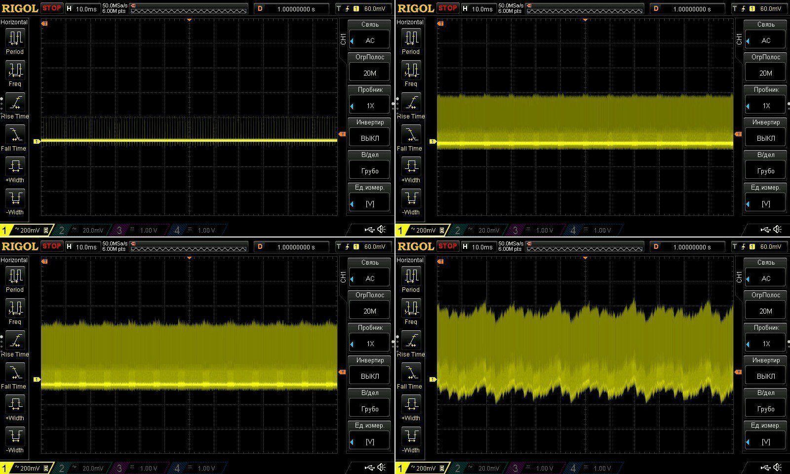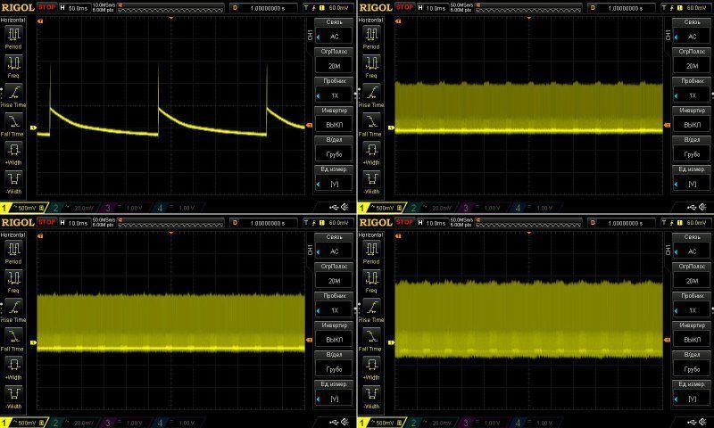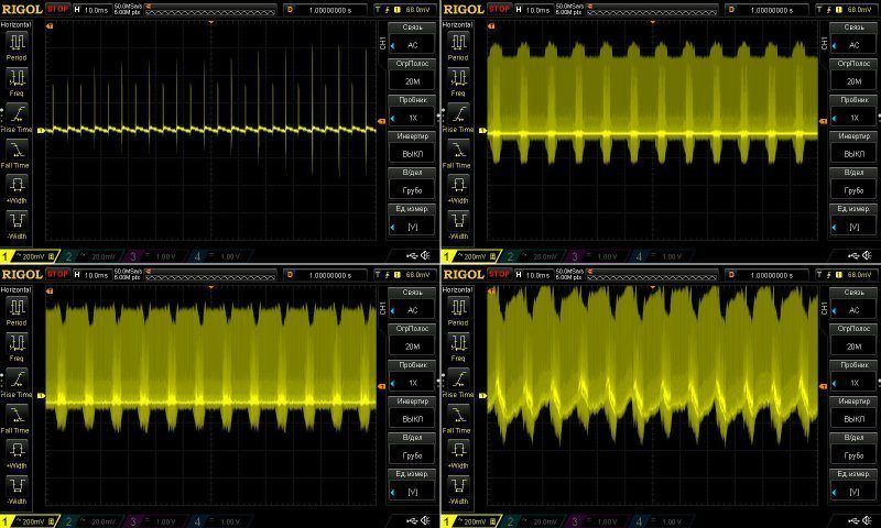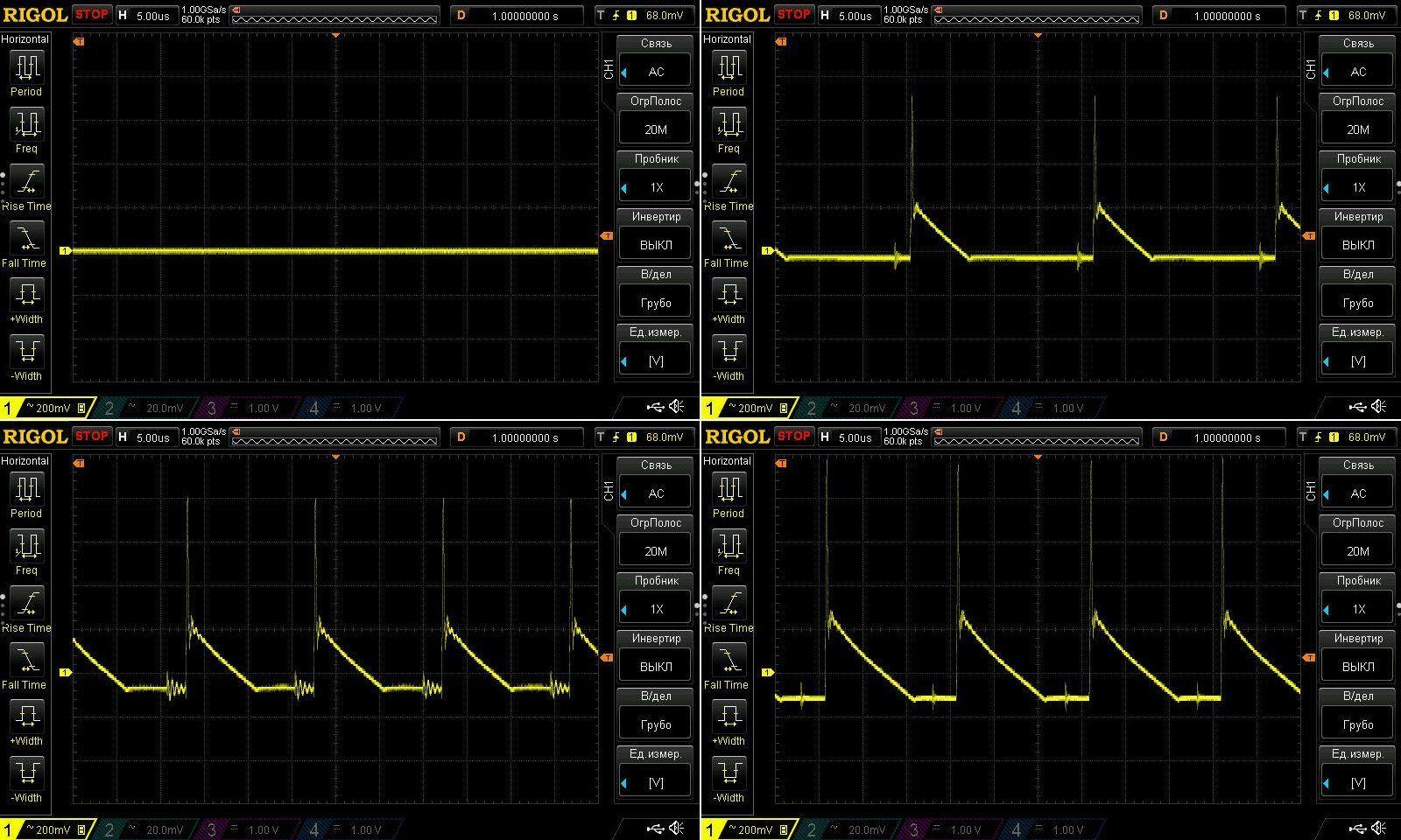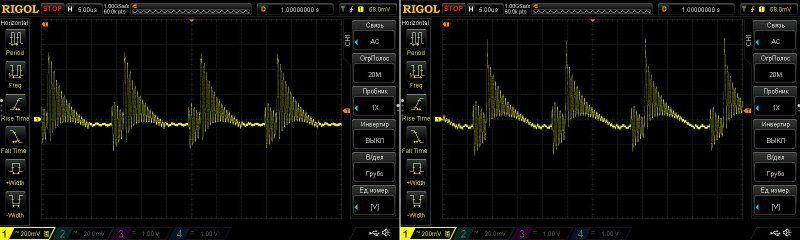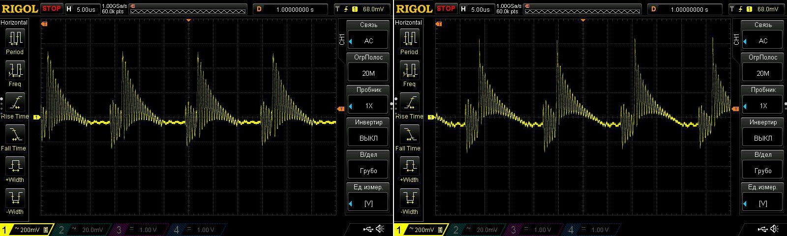 А также временами осциллограмма ВЧ пульсаций выглядела не очень красиво.... Ощущение что схема входит в какое-то самовозбуждение.