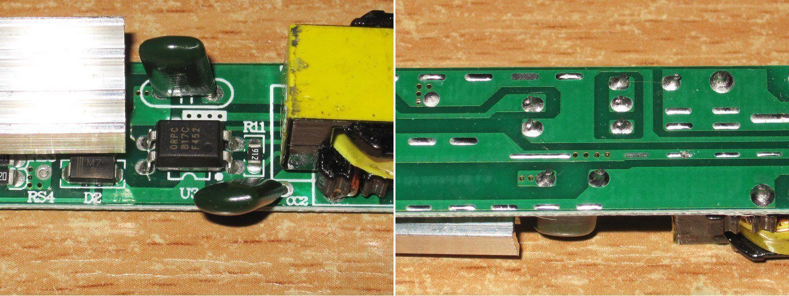 Применен ШИМ контроллер с маркировкой 30509, у 48 ватт версии он просто скрыт под радиатором. Здесь оптрон уже находится на своем правильном месте.