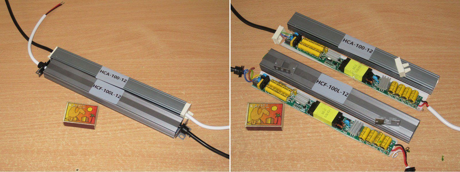 Ну и пятая пара, блоки питания HCA-100 и HCA-100L, мощность 100 ватт у обоих, ток соответственно 8.3 ампера.