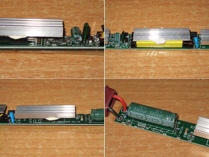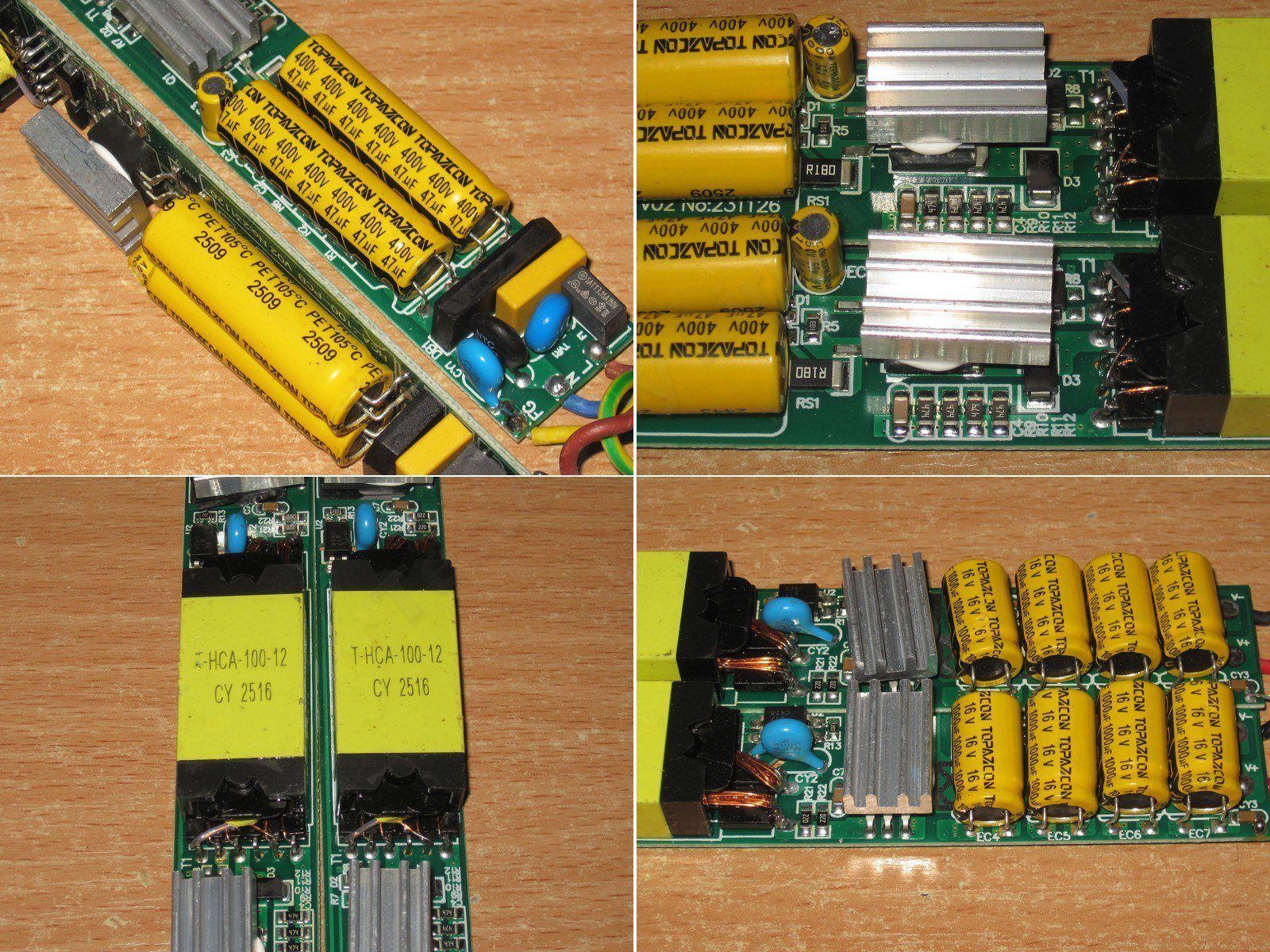 Чуть не забыл, во всех моделях кроме 100 ватт применены конденсаторы с заявленным верхним диапазоном 130 градусов, это конечно круто, но также имеются странности с их размерами, при одинаковой емкости размер отличается, а при сильно разной почти одинаков. Собственно из-за этого у меня есть сомнения что конденсаторы реально на 130 градусов.