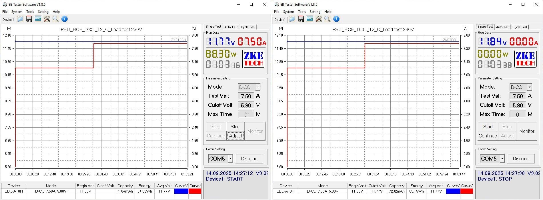 Результаты теста были немного предсказуемы, но распишу подробнее. При токе 6 ампер все вообще отлично, потому перейду к току 7.5 ампера.