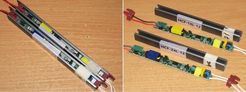 HCF-18L и HCF-24L. Я бы назвал их относительно неплохими, по крайней мере свою мощность они выдают, да и собраны с применением интегрированного ШИМ контроллера, что дает еще и защиту от перегрева. По пульсациям приемлемо, по стабильности тоже, если исключить вопрос безопасности, то неплохие блочки.