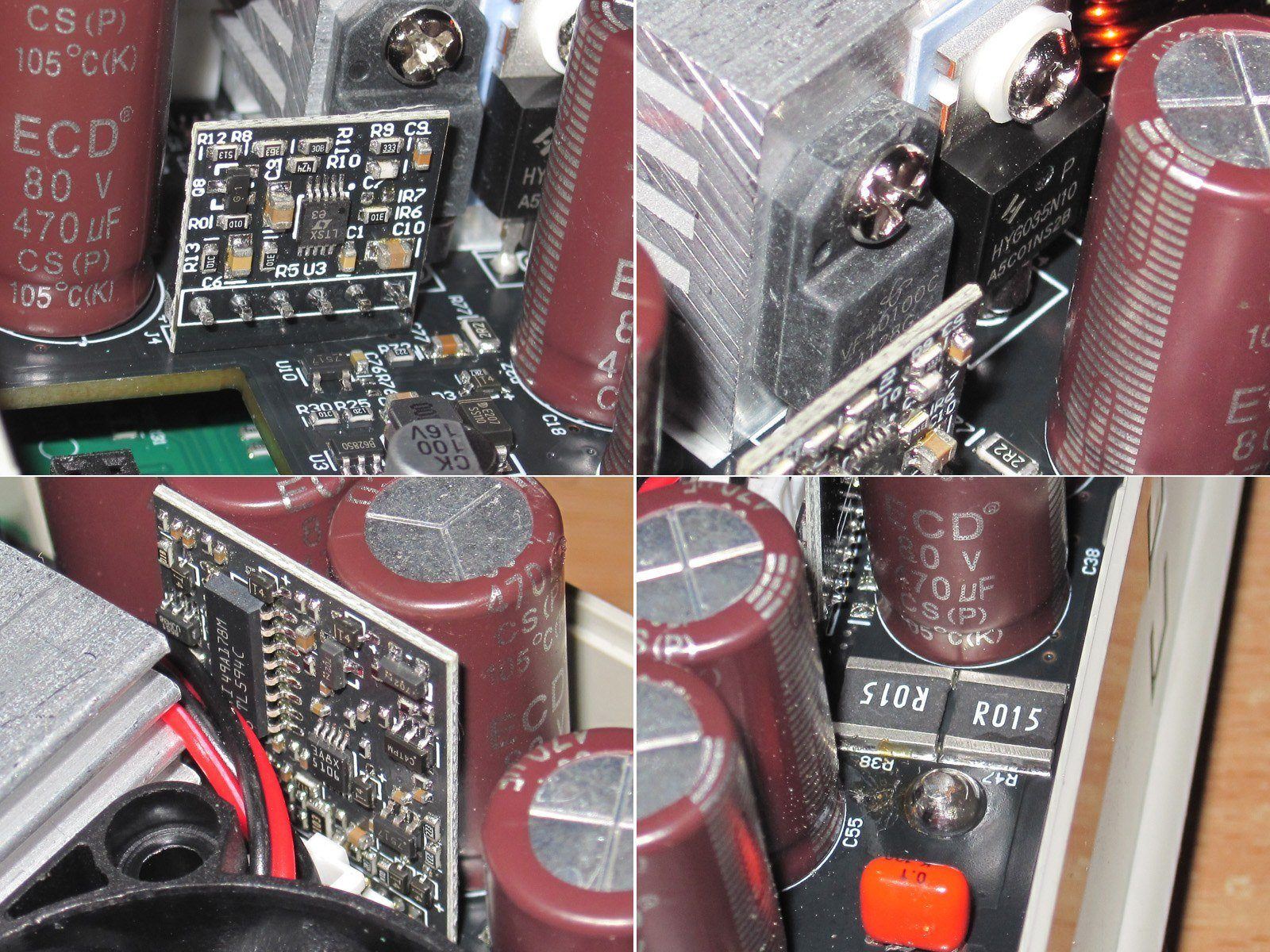 Итого на общей плате имеется три субмодуля, компоновка явно очень плотная, не нашлось места даже для входного дросселя.