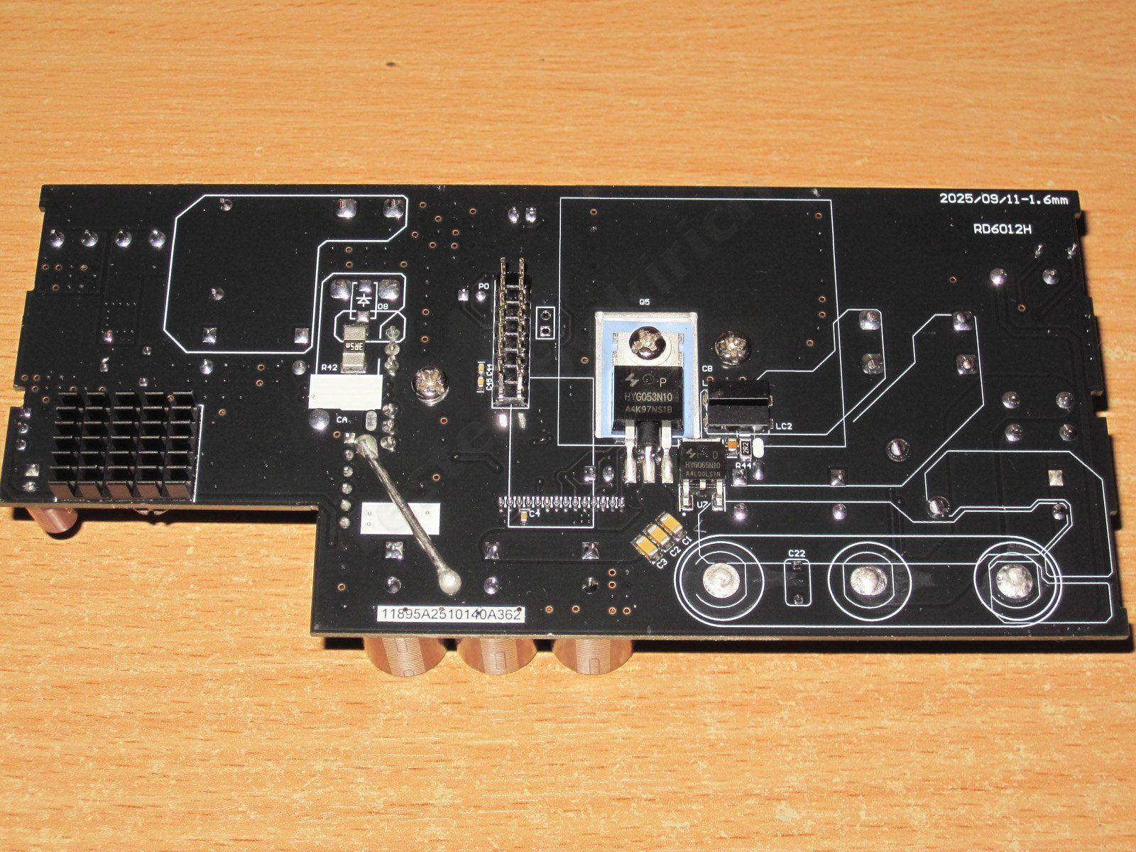Дальше вынимаем силовую плату, чтобы это сделать надо сначала выпаять три выходные клеммы и должен сказать, что в отличие от предыдущих моделей, выпаивать их было почему-то сложнее, хотя может это субъективно, особенно отличилась в этом плане минусовая клемма.