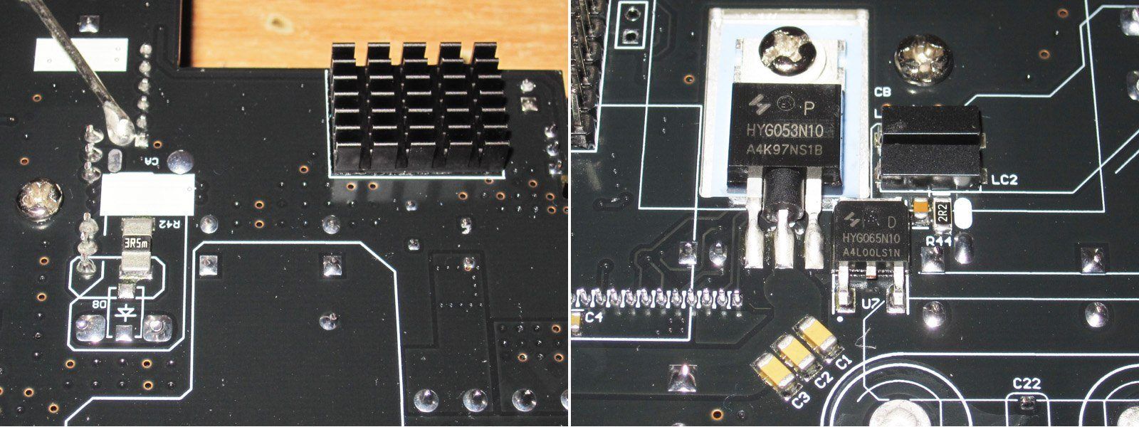 2. Диод и транзистор повышайки, отмечу что у диода нет термопасты, не есть хорошо.