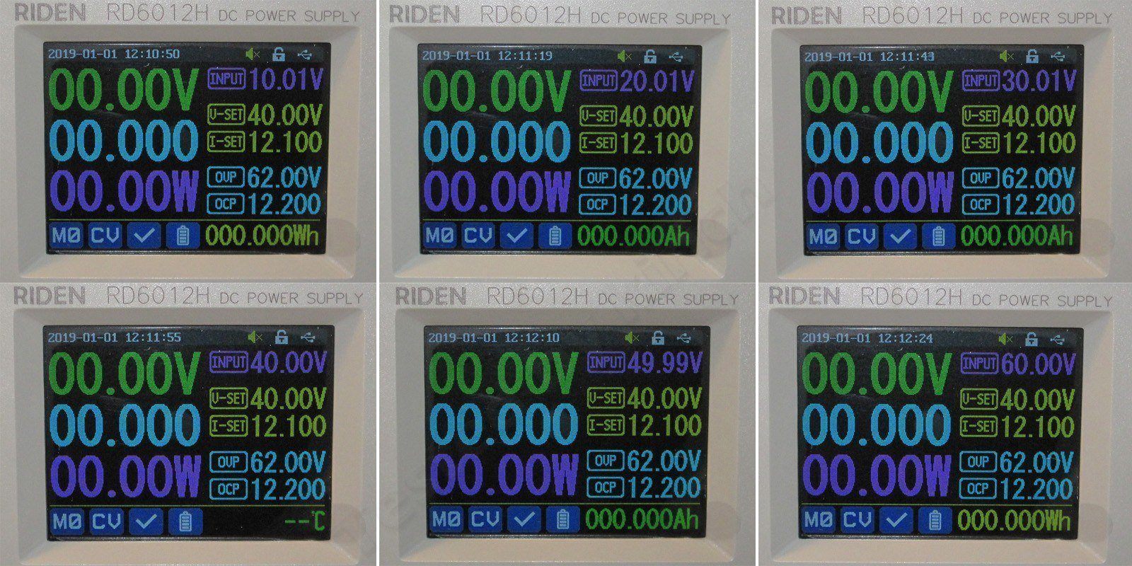 Первый тест, оценка точности измерения входного напряжения, проверял при 10, 20, 30, 40, 50 и 60 вольт и везде без претензий, погрешность максимум 0.01 вольта.
