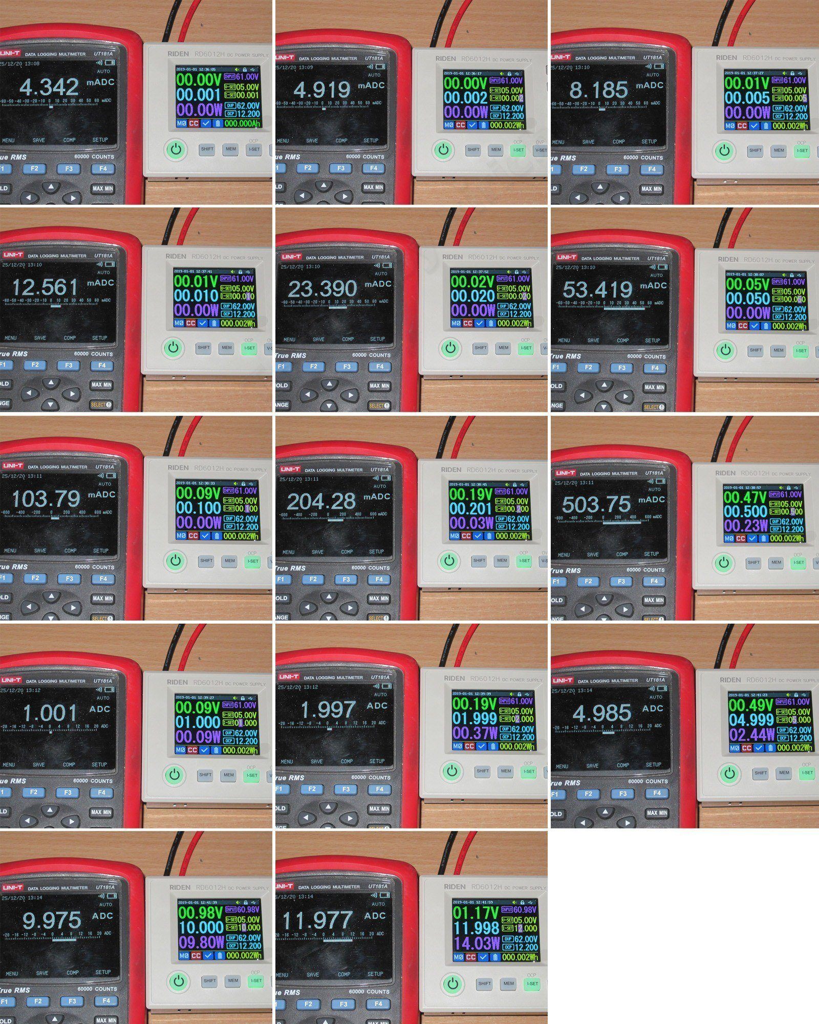 То же самое по току от минимума до максимума, сетка та же самая, 1-2-5, но в конце есть проверка при токе 12А.
