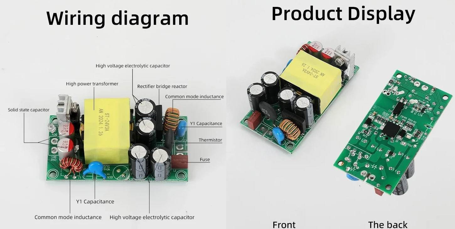 Также на странице магазина есть картинка с обозначением что установлено на плате, правда они пропустили выходной диод, а это также одна из "фишек" данной модели блоков питания, позже поясню.