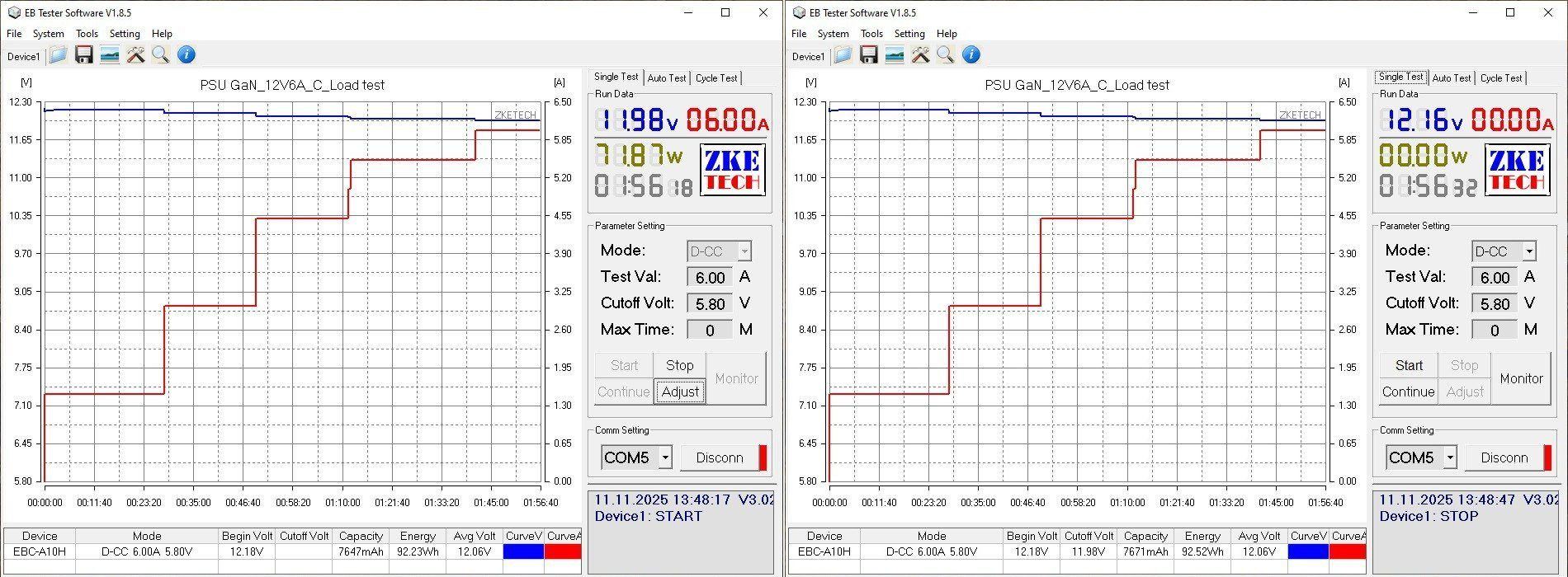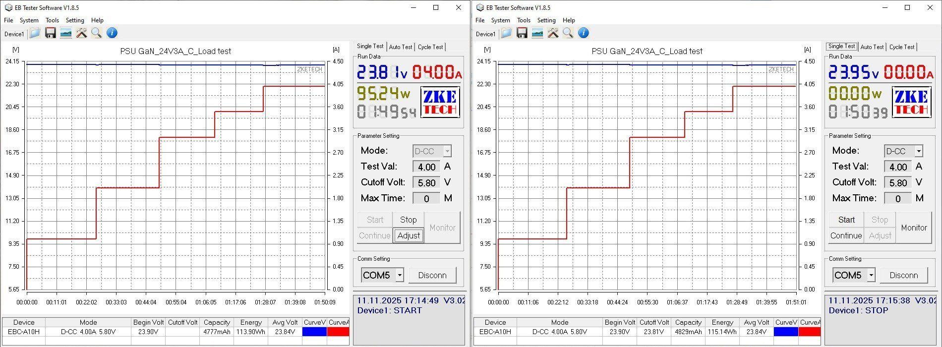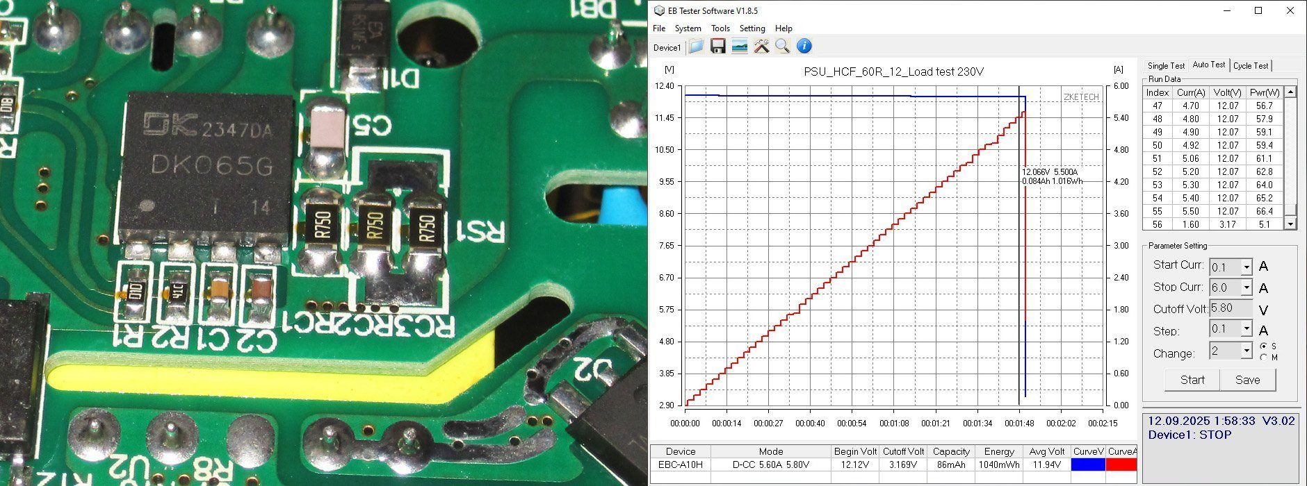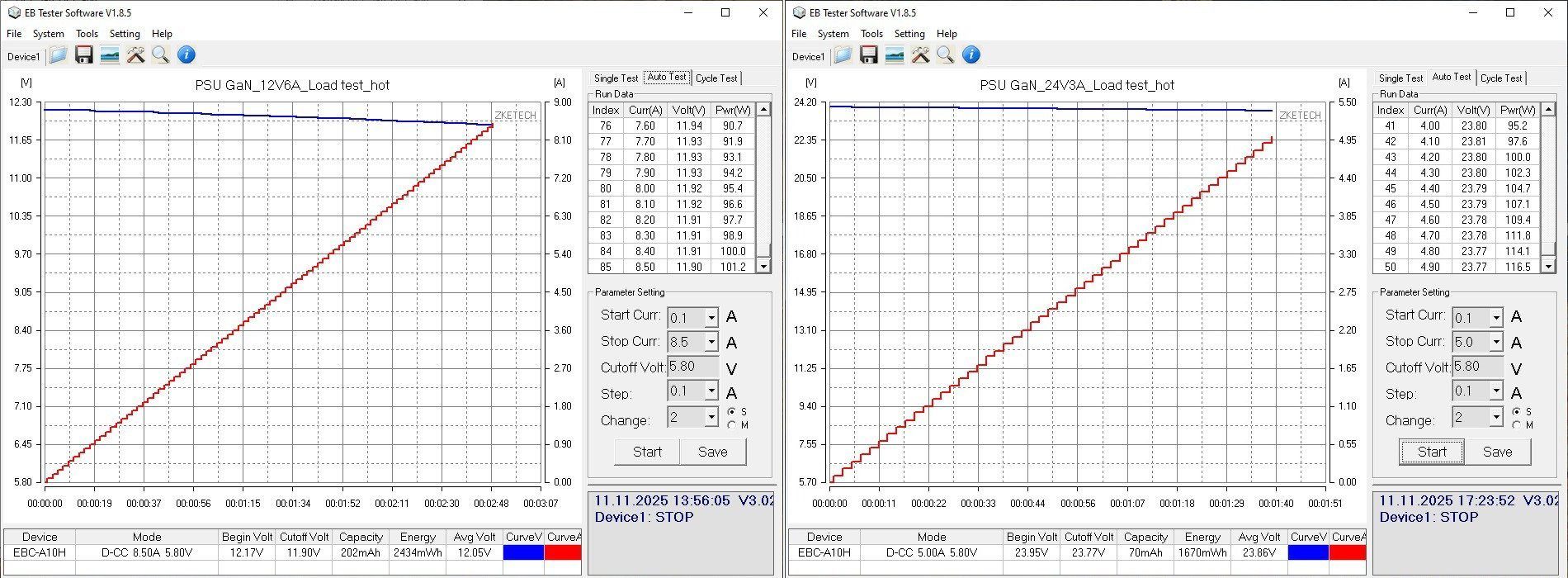 Дальше тесты, так как блоки относительно небольшой мощности, то я использовал нагрузку ZKEtech EBC-A10H.