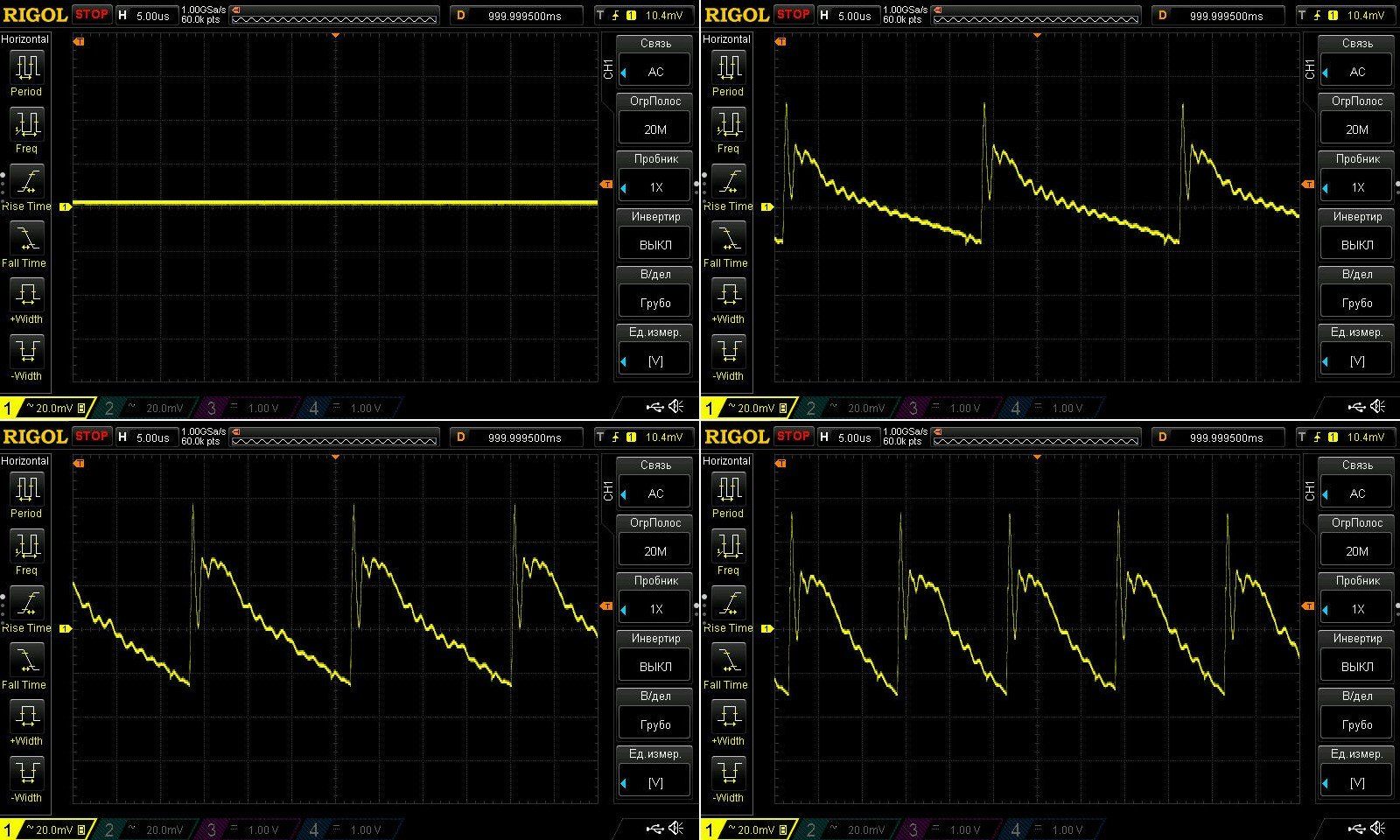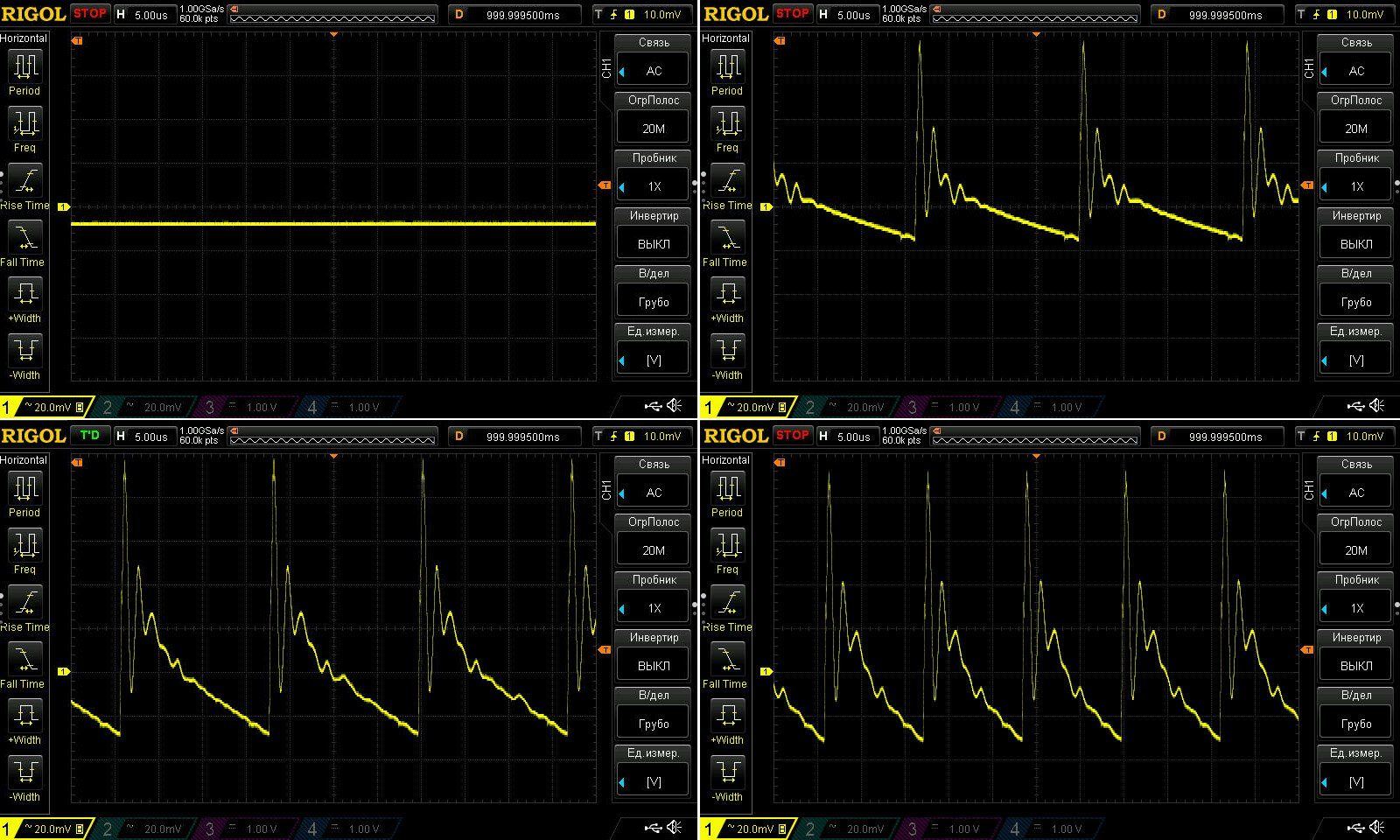 По НЧ картина сходна с 12 вольт версией, но общий размах конечно меньше, причина, просто меньшие пульсации на ВЧ.
