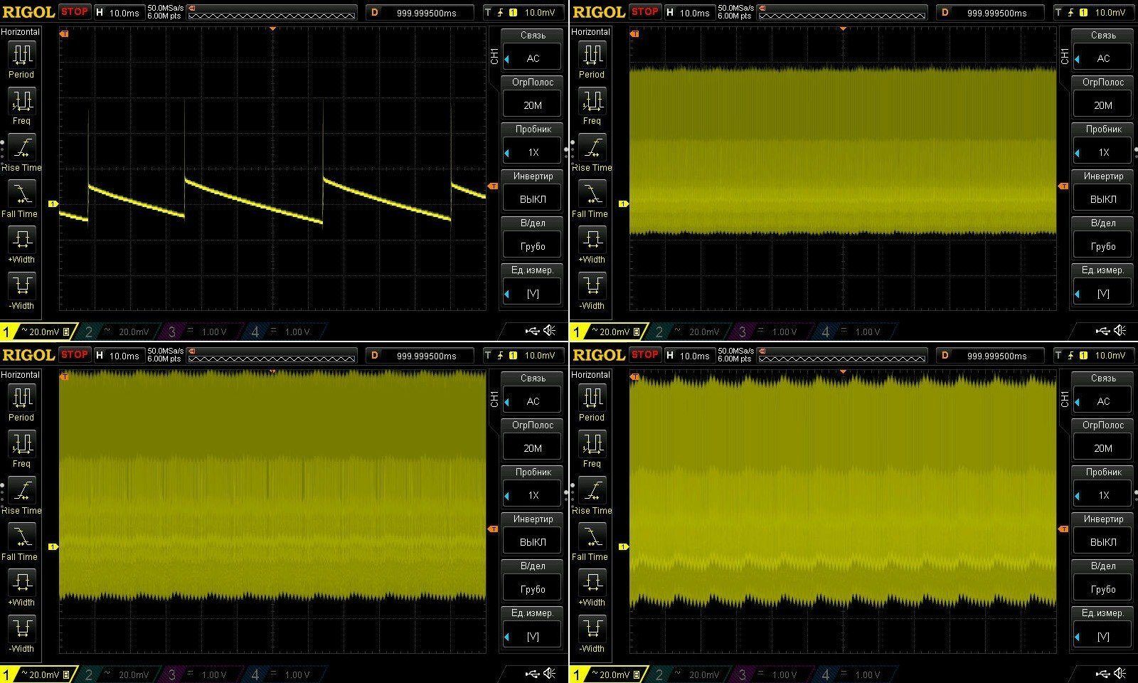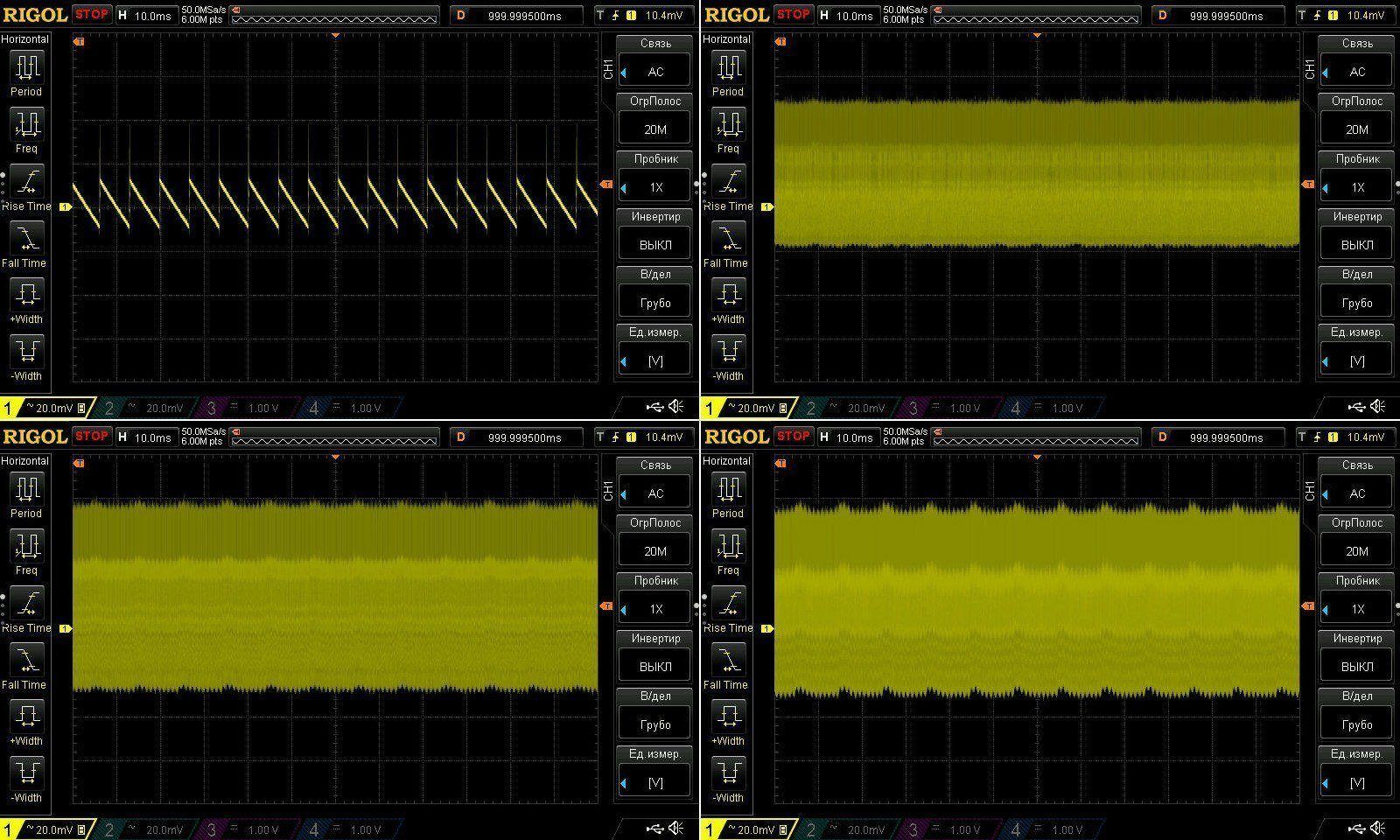 На НЧ видим характерный признак наличия "зеленого режима", пульсации с частотой 100 Гу начинают немного проявляться при макс токе, так что тут в общем вполне нормально.