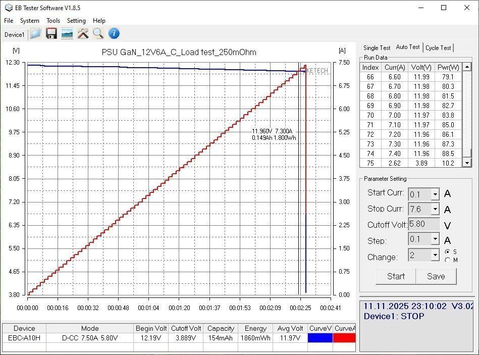 Тест по прогреву включал в себя довольно много этапов, 1.5, 3, 4.5, 5.5 и 6А, общее время теста порядка 2 часов.