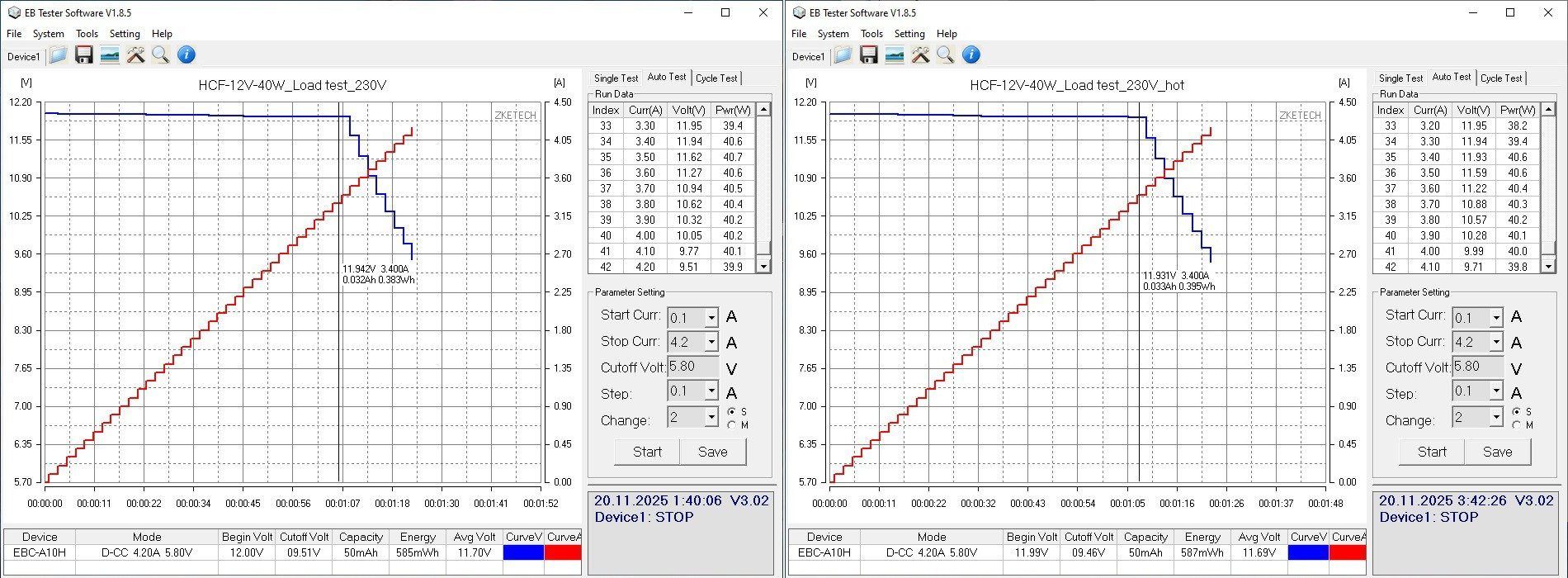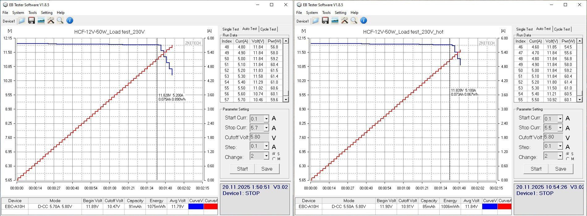 Маломощные модели тестировал при помощи электронной нагрузки EBC-A10H, так удобнее строить графики.