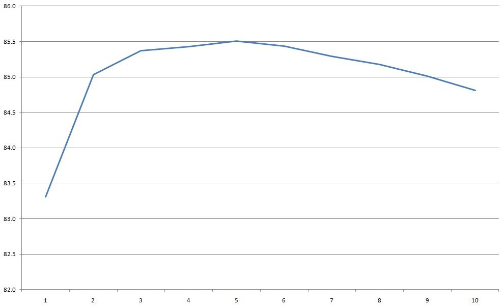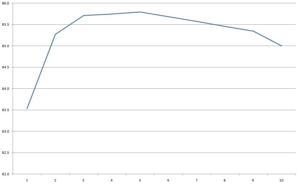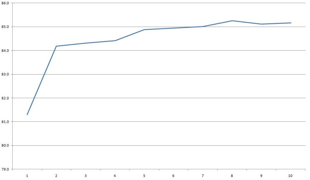 КПД в диапазоне 1-10А кратно 1А, получил примерно 85.5%, обычный, типовой результат, ничего примечательного.