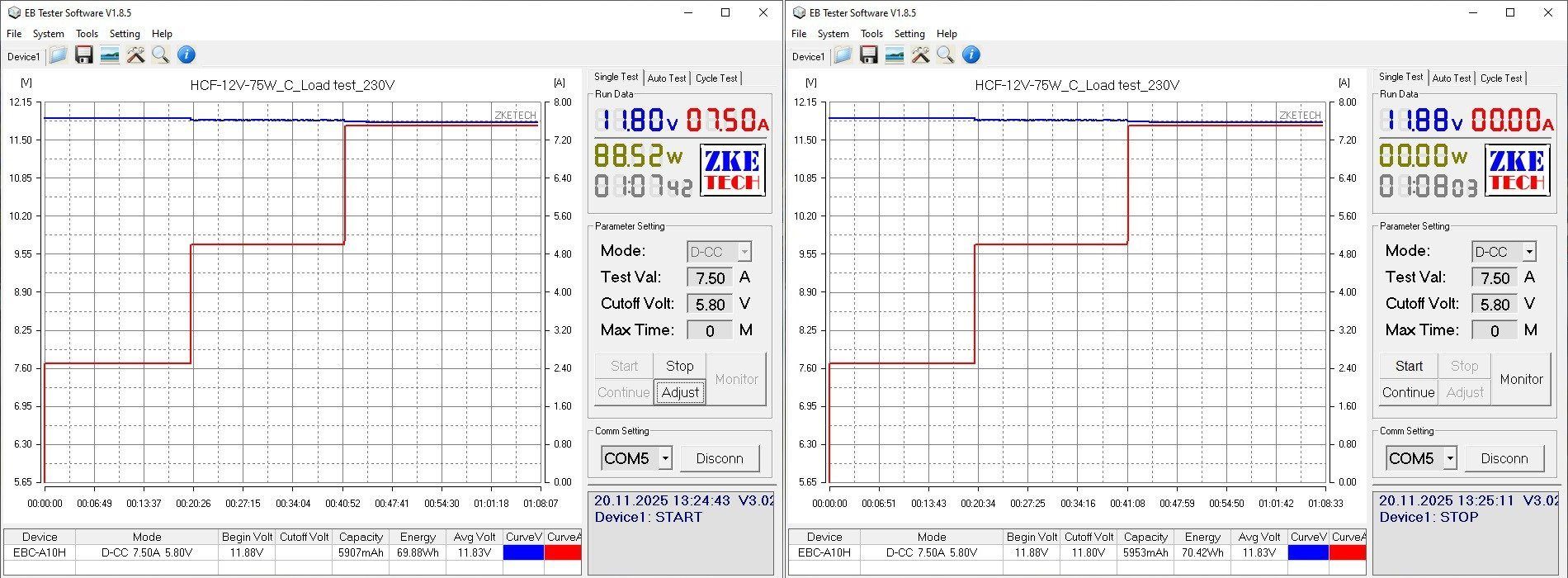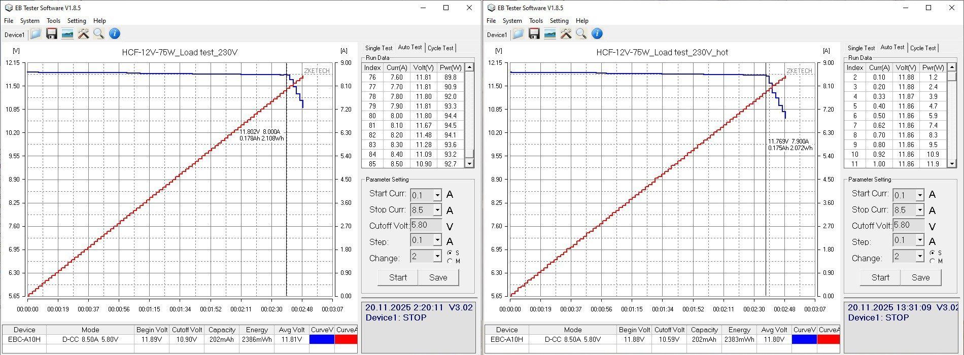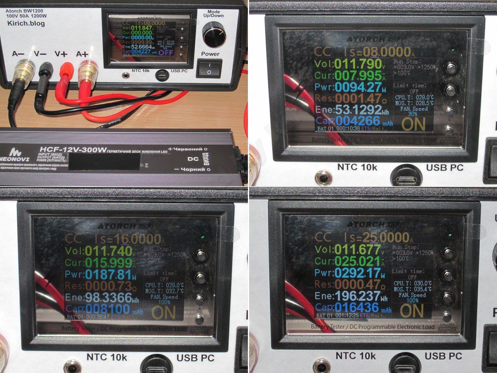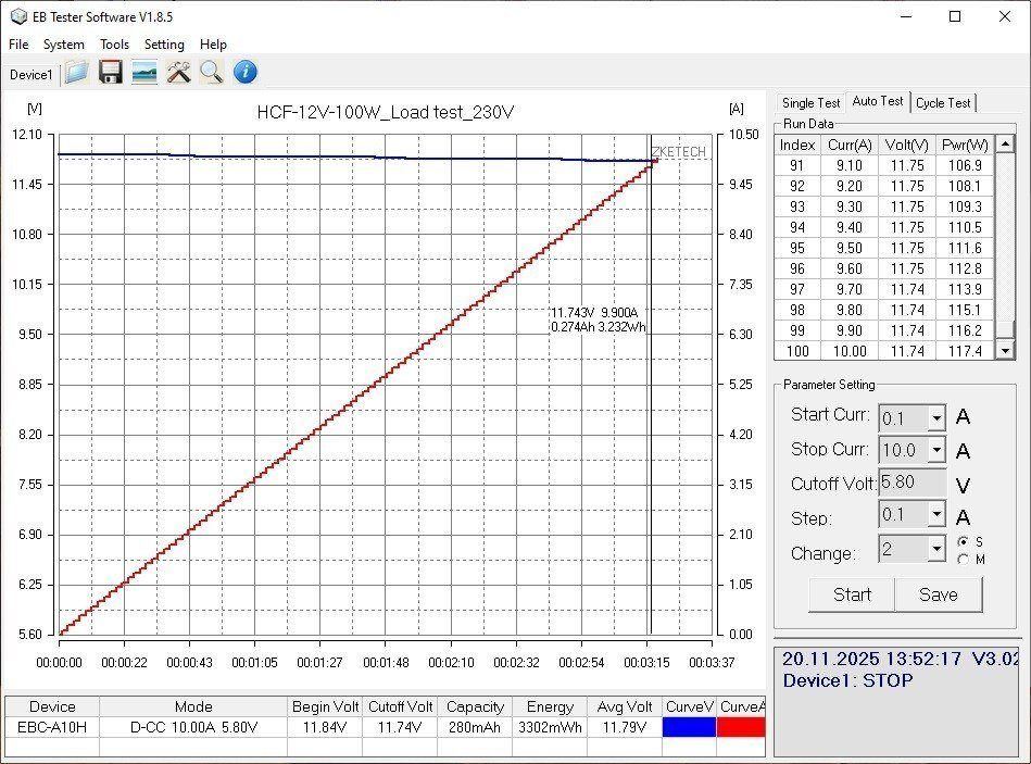 Здесь все проверки проходили уже с нагрузкой на базе Atorch CL24, потому как заявленный ток 10 ампер, что для EBC-A10H является максимумом.