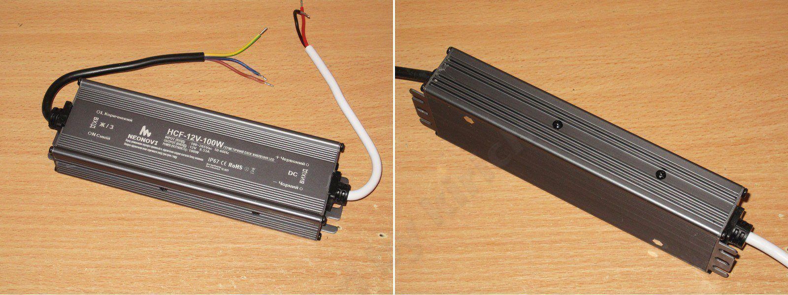 Начнем с модели 12 вольт 100 ватт, корпус заметно больше, да и с одной стороны силовые компоненты явно прикручены к корпусу - ссылка
