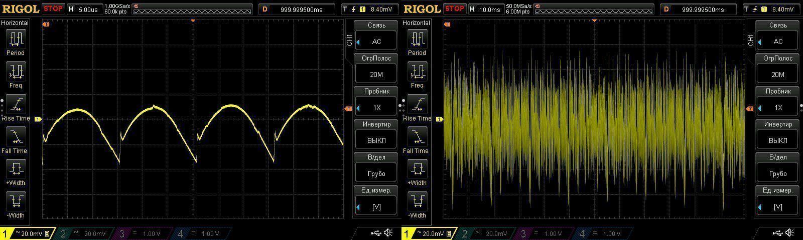 На частоте сети имеются небольшие пульсации, вполне допустимые и проявляющиеся в основном только на максимальной мощности.