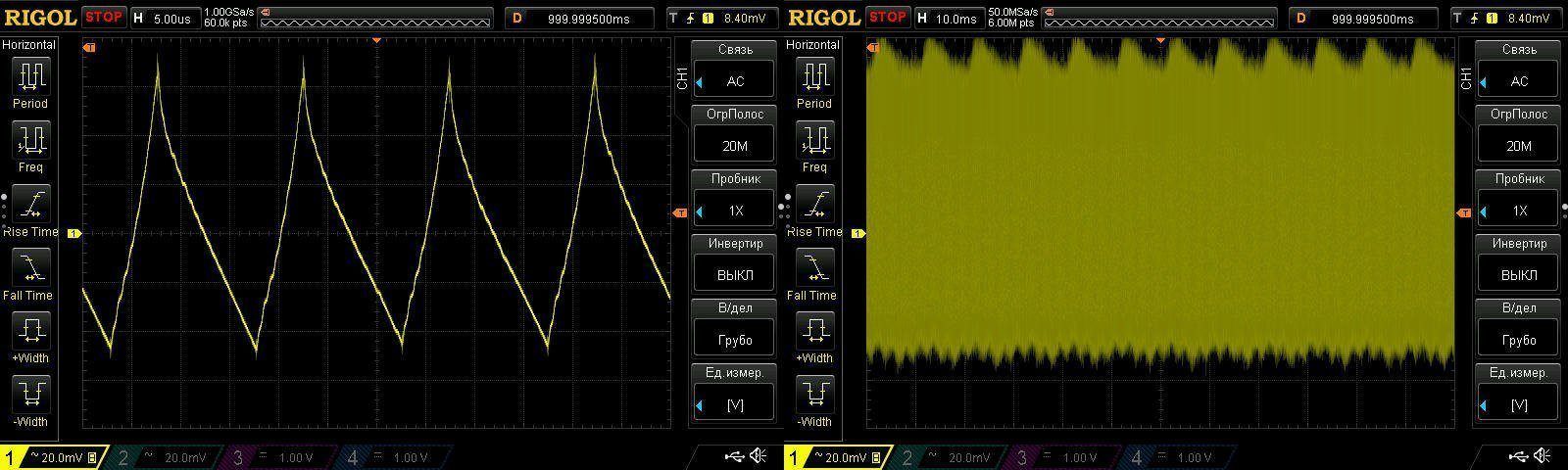А расстроил тем, что в режиме без нагрузки он переходит в режим старт/стоп с относительно низкой частотой, и при этом получаются пульсации с размахом около 1.2 вольта, хотя в режиме работы под нагрузкой они реально совсем небольшие.