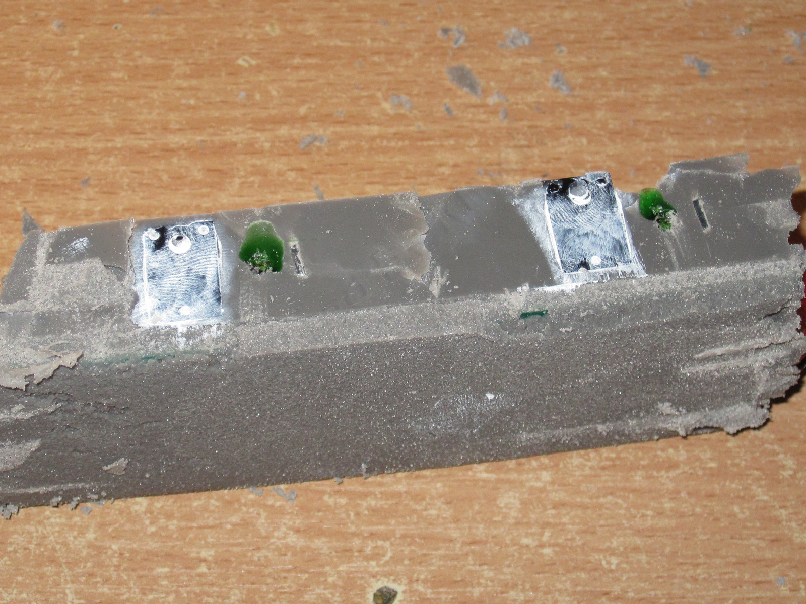 4. Максимально вырезаем компаунд с краев платы, обычно она заметно короче корпуса. цель добраться до торца платы и очистить его.