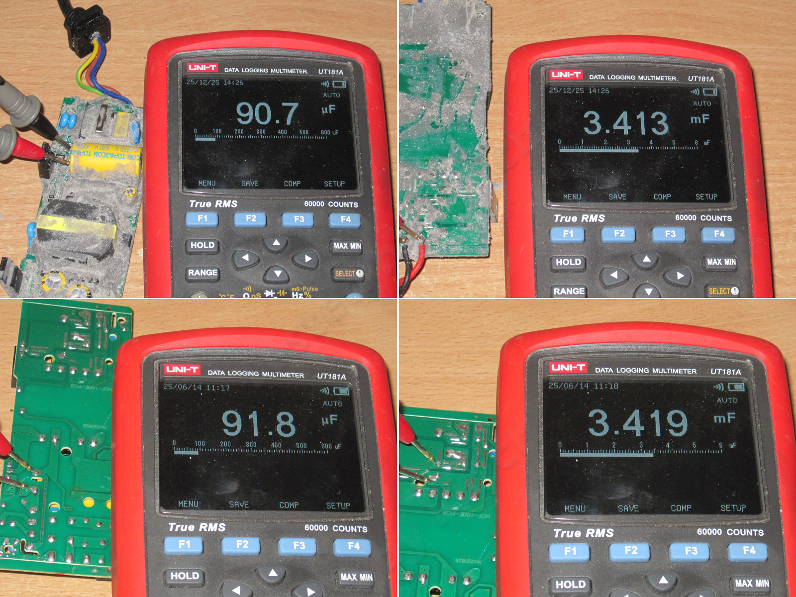 И получается что у парных моделей 60/75, 100/120 и 250/300 ватт получается так - 2948/2946, 3453/3458, 6920/6900мкФ, разница в пределах погрешности.