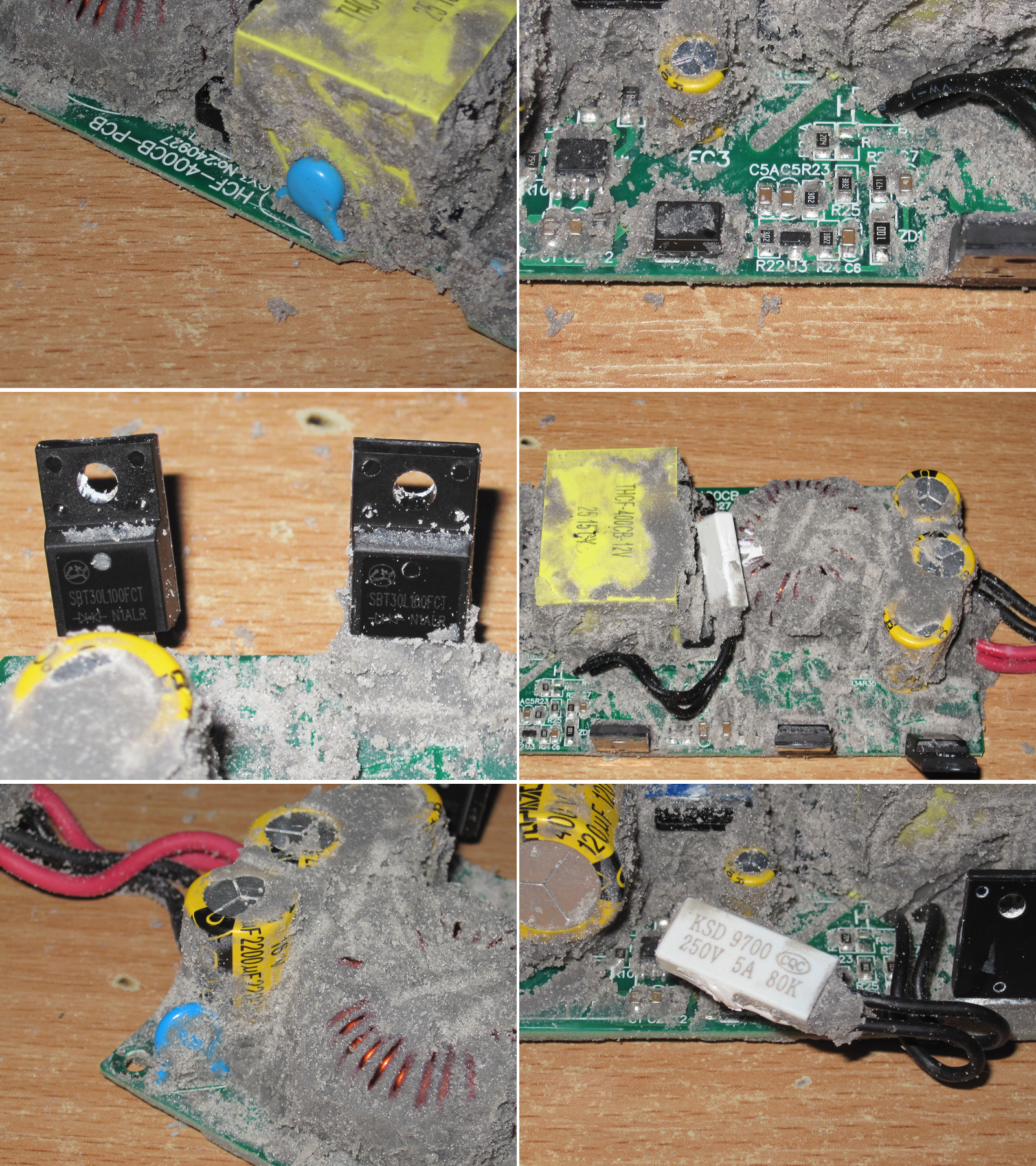 3. Выкручиваем крепеж силовых компонентов, потом вырезаем компаунд в местах крепежа платы и выкручиваем винты.