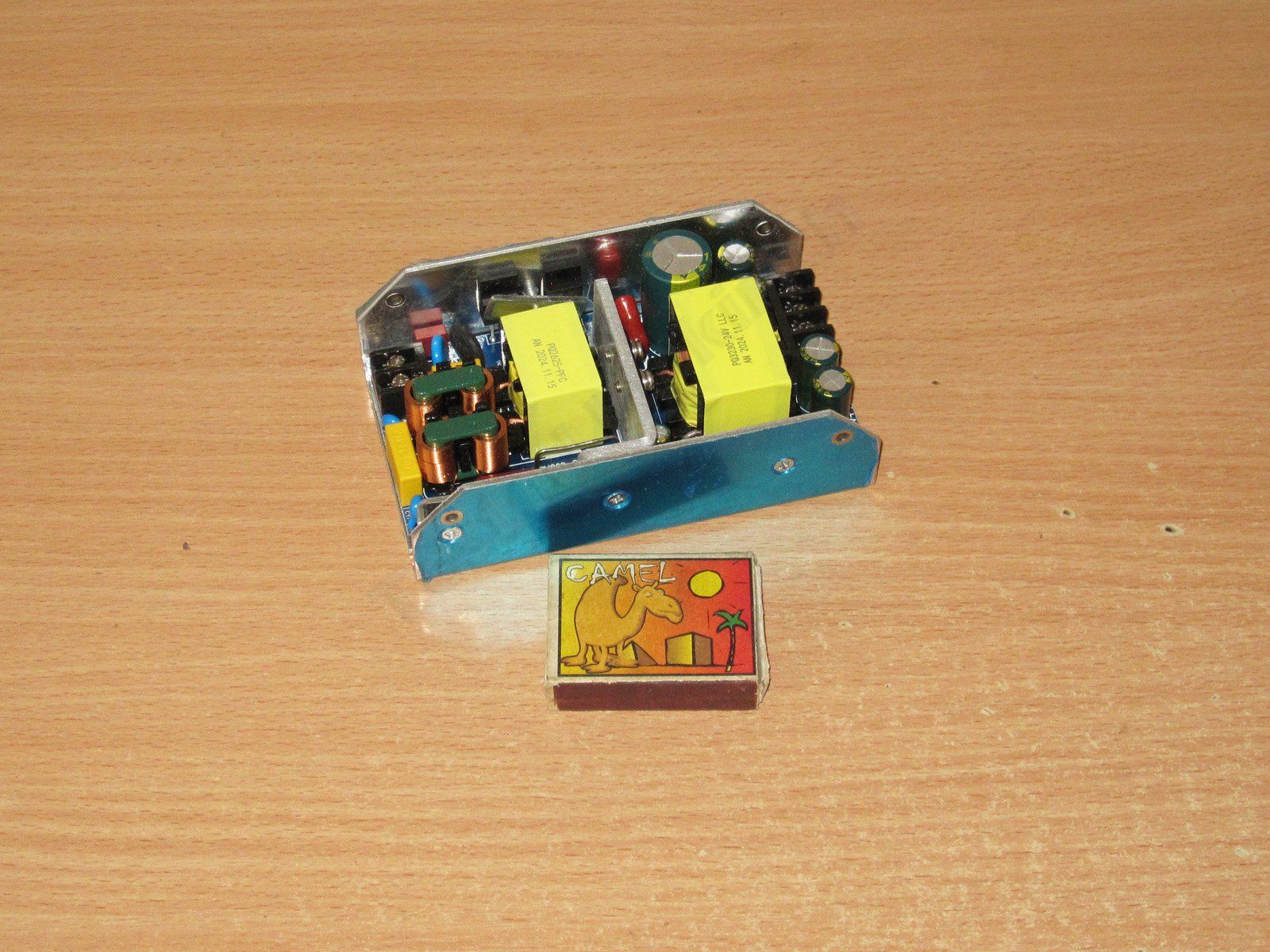 Конструктивно упакован в П-образное алюминиевое шасси, собственно типовое решение для встраиваемых блоков питания. Есть версия на 36 вольт 7 ампер и 24 вольта 10 ампер.
